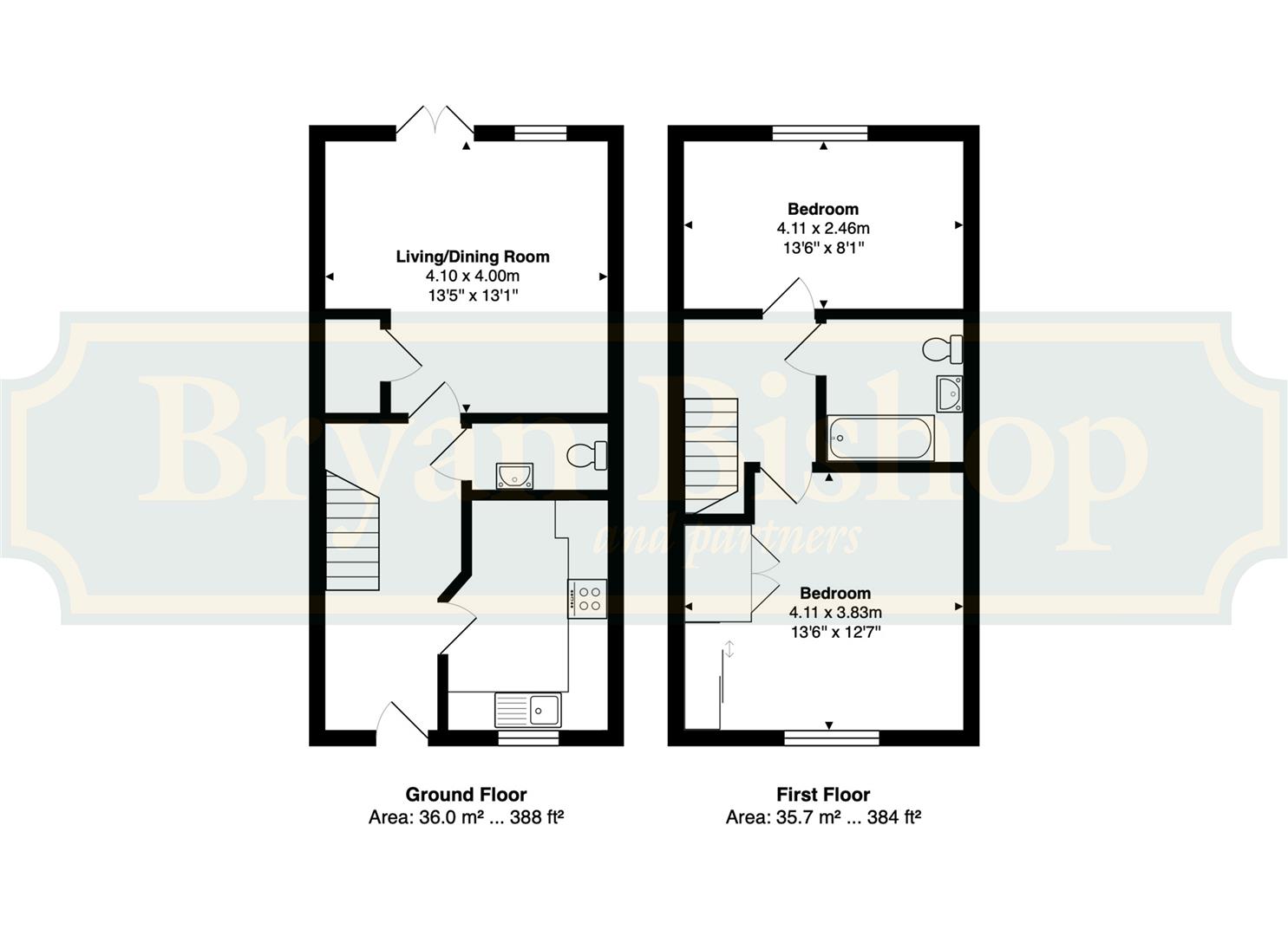Upstairs, the property offers two well-proportioned bedrooms, each designed with a modern feel, along with a tastefully appointed family bathroom.