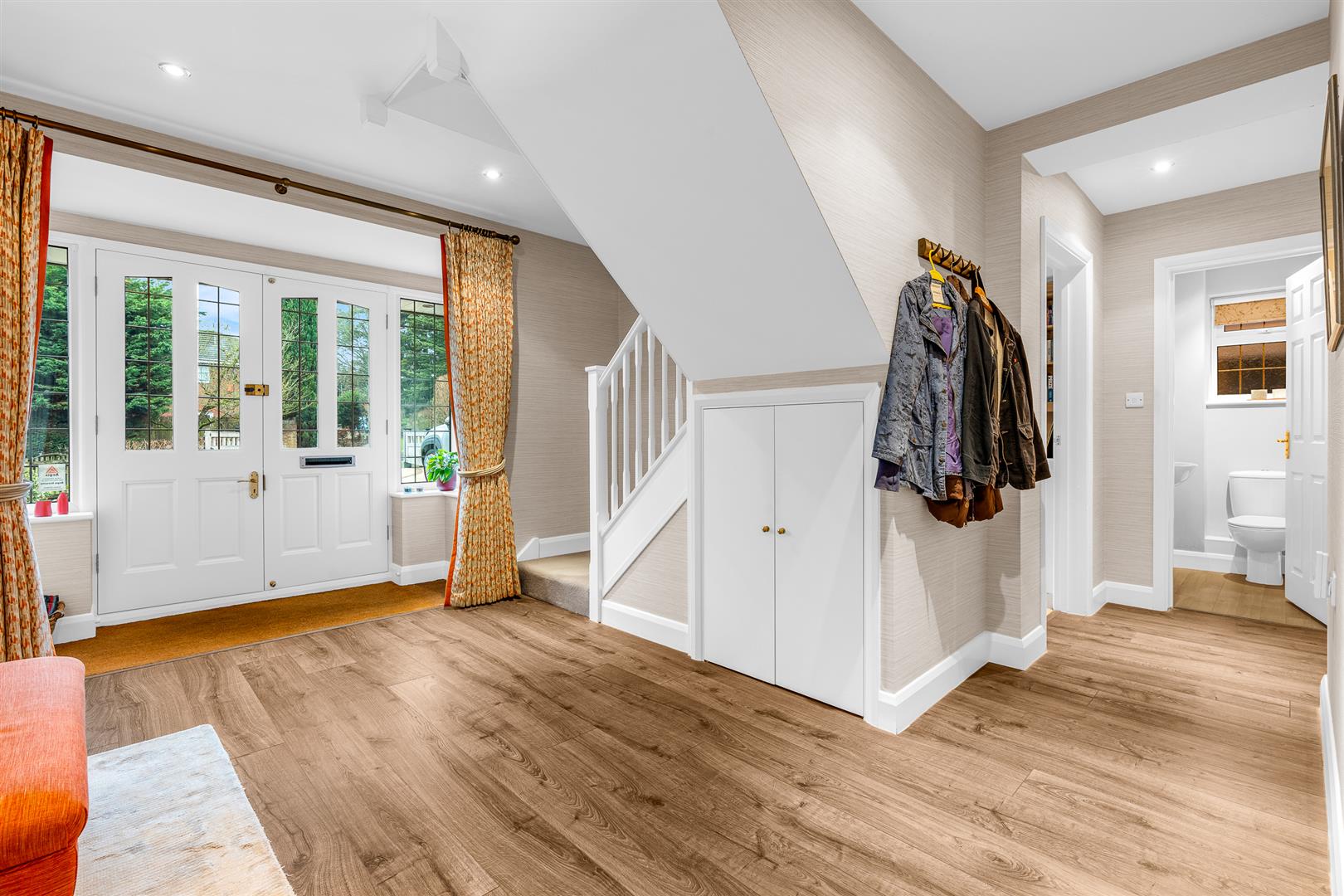 Bryan Bishop and Partners are delighted to bring to the market this absolutely outstanding four double bedroom, two bathroom detached family home located along one of the most prestigious roads in the highly desirable Oaklands area of Welwyn. This stunning property has been designed and built using only materials, fixtures and fittings of the very best quality, and displays the highest architectural standards throughout along with decor displaying, quite simply, impeccable taste. Certainly it is a large house, but the rooms are all of beautifully balanced proportions which imbues this usable, practical family home with an aura of welcoming warmth. Generous grounds front and back are all immaculately landscaped and maintained, with more than ample off-street parking on the gated driveway and a tandem double garage. The double fronted exterior effortlessly presents an imposing and attractive impression, with some wonderful styling details working together to add real architectural merit whilst at the same time balancing and softening the visual impact of such a substantial building. The clever mirroring of the roof lines of the garage and two front facing upper bedrooms is punctuated by the matched shape of the central window in the upper hallway. Leaded light windows throughout add detail and quality, which is further enhanced by a delightful set of bespoke entrance gates that have been skilfully crafted to follow the gentle slope of the road. Being surrounded by neighbouring houses of a similar size and status endows the whole area with a wonderful, genteel, open ambience, yet the facilities of the local area are a short stroll away, with the vibrant and thriving centre of Welwyn village just a few minutes further by car.