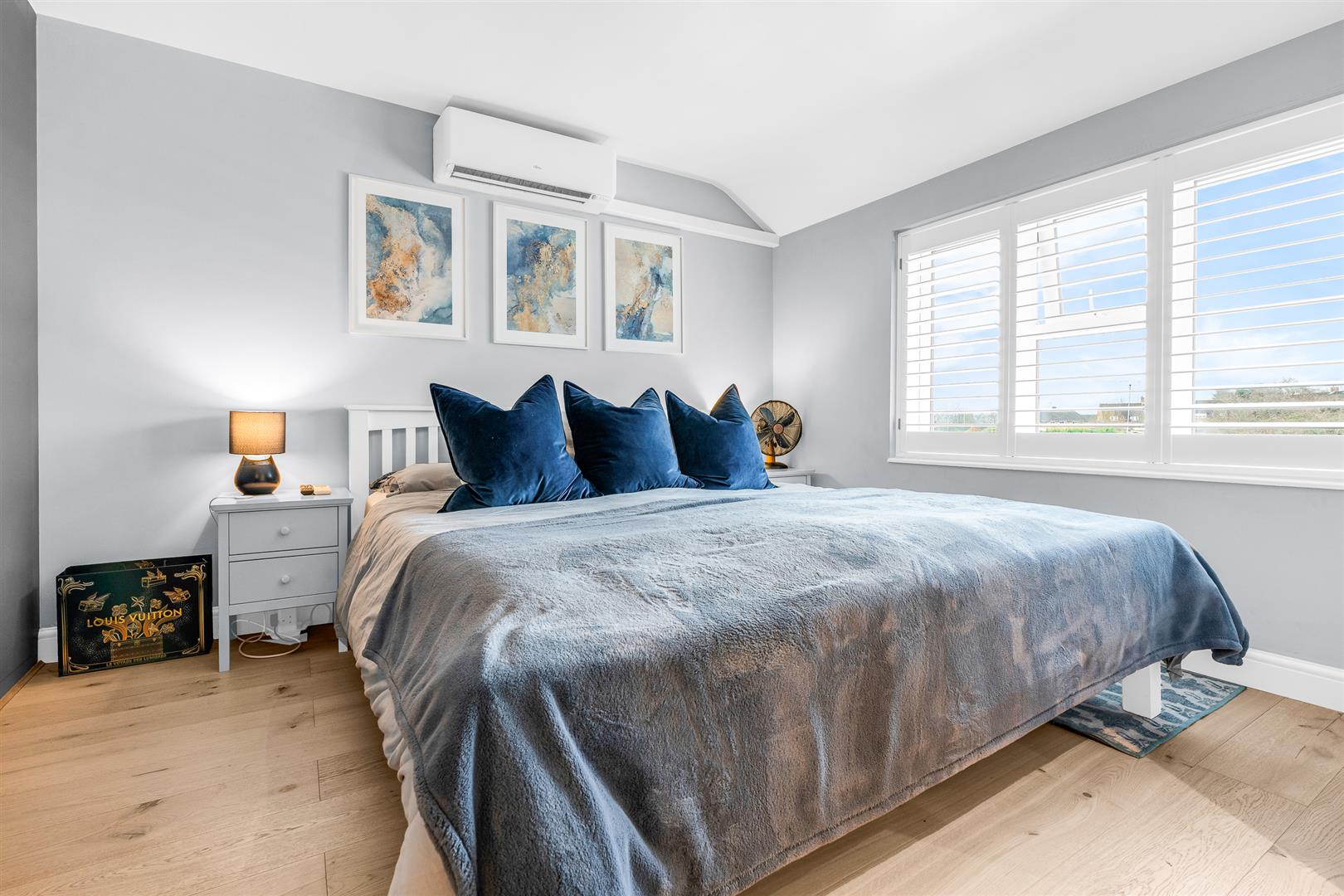 Upstairs are four good sized bedrooms, with two of them fitted with creative and innovative sleeping platforms that bring a stylish, contemporary way of increasing floor space and storage. The principal bedroom has modern fitted wardrobes and a large en suite bathroom that includes a bath with shower attachment and screen. The other bathroom is also blessed with a full bath with a shower and screen fitted above it. All of the bedrooms have the welcome benefit of air conditioning.