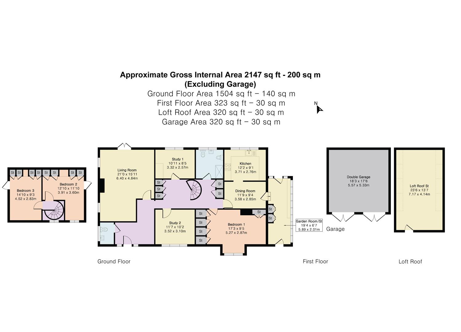 The fabulous spiral staircase at the centre of the inner hallway, beautifully illuminated by a window at the top of the stairwell, leads to the two first floor bedrooms. Both benefit from eaves storage cupboards and both enjoy wonderful views out over the rear garden. There is also ample storage in the remaining loft space.