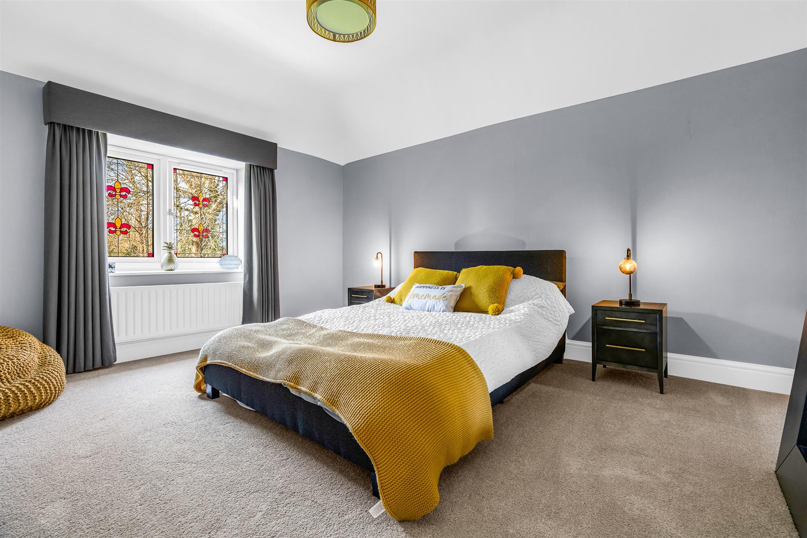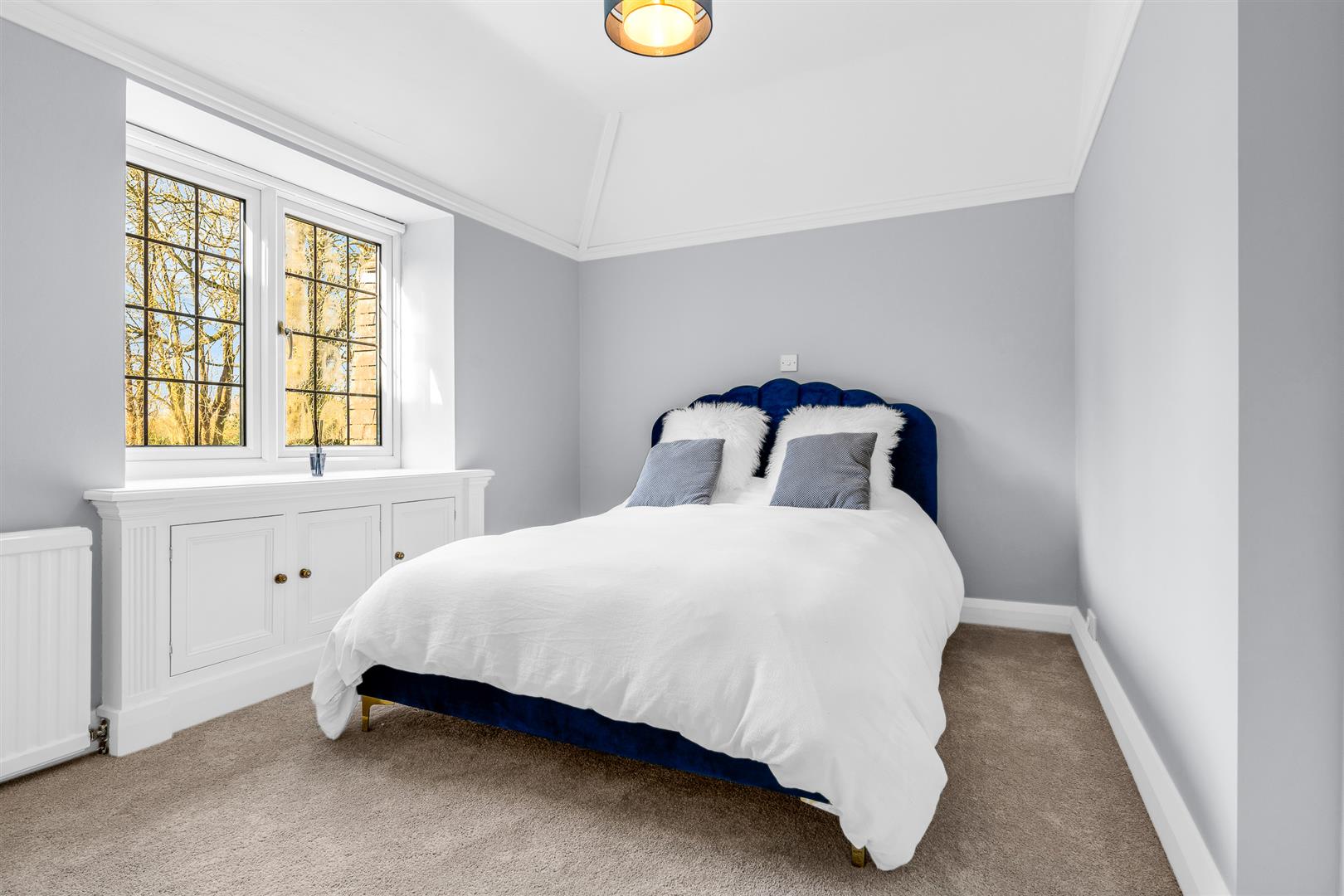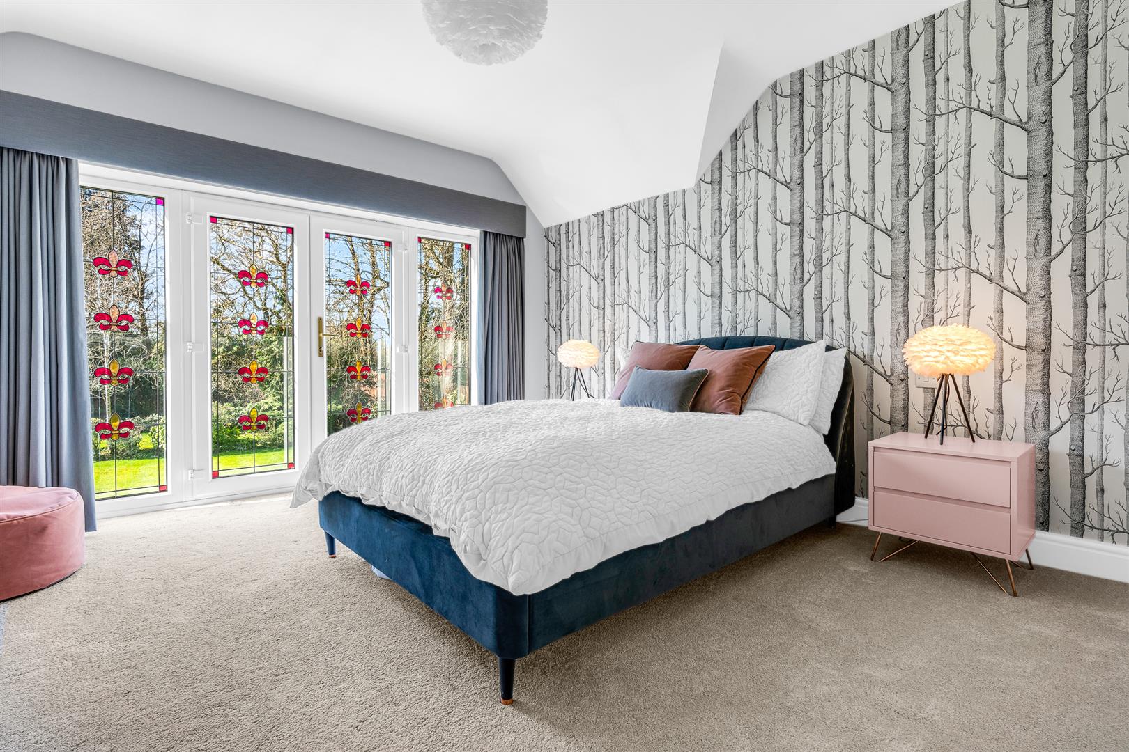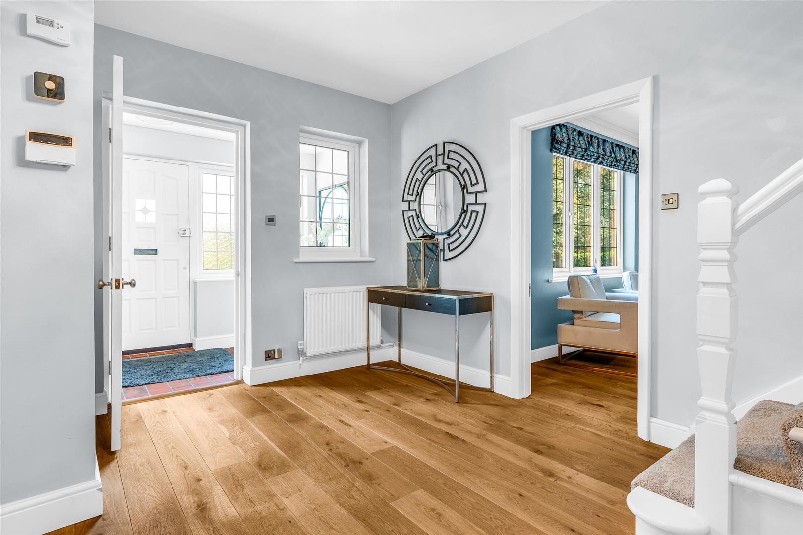 Adjacent to the games room is the sitting room, another room benefiting from a fully glazed door opening out into the rear gardens. Of a nicely balanced shape and size, the room is a cosy separate space for relaxing, maybe watching some TV, yet is comfortably large enough for multiple sofas and chairs, with a beautifully and intricately crafted feature fireplace at its centre.