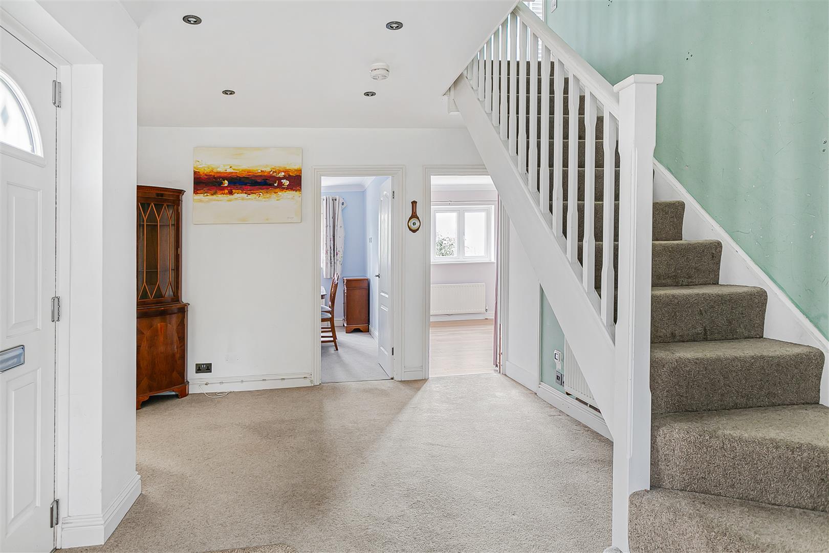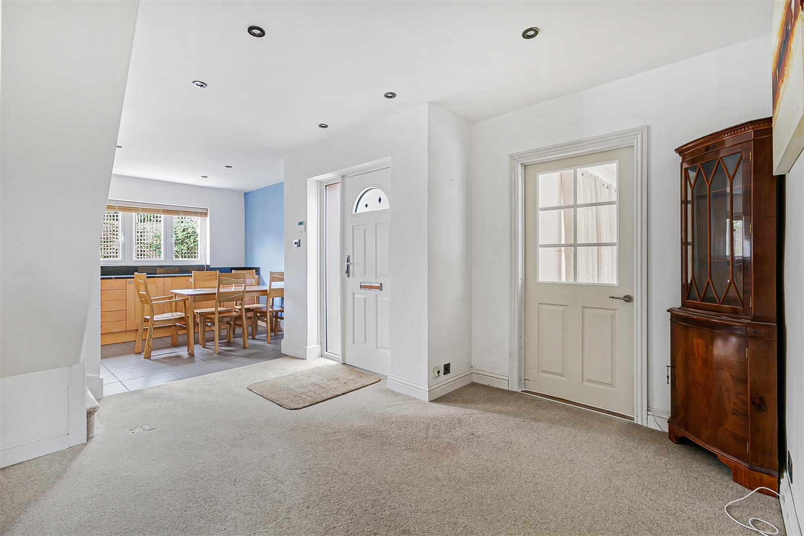 The pretty front door, inset with an attractive decorative shaped glass panel and flanked by a full height opaque window on one side, opens into a large square entrance hall. The generous size and great shape of the space make it more of a reception room really, with plenty of opportunity to furnish the space whilst still leaving ample room to ensure your visitors all receive a warm welcome. From here there is a useful open plan connection through to the dining area of the kitchen/dining room as well as doors through to the living room, and doors into two additional rooms that could be used as valuable ground floor bedrooms if so desired.