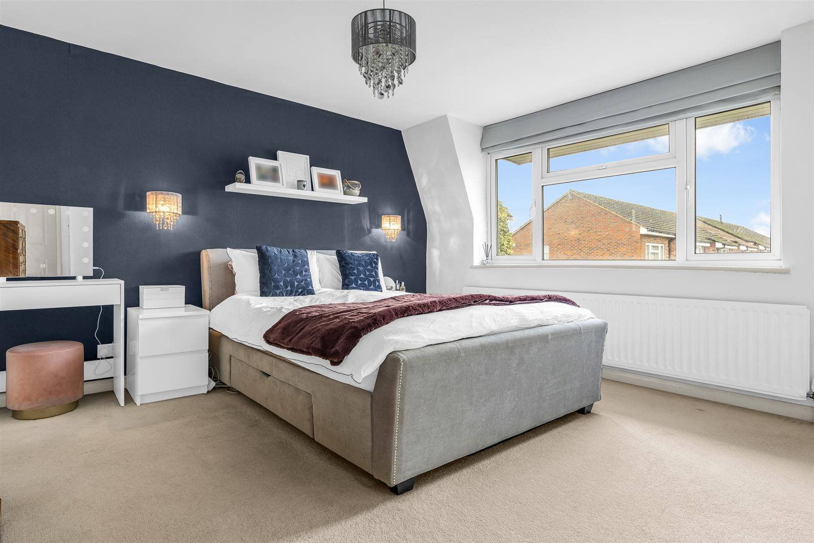 The living room enjoys well balanced proportions as well as a good size, making it practical and flexible when you come to decide on the configuration and furnishings. It is comfortably large enough for multiple sofas and chairs, along with other occasional furniture besides, and enjoys a light, bright atmosphere thanks to the very large picture window that looks out over the front garden.
