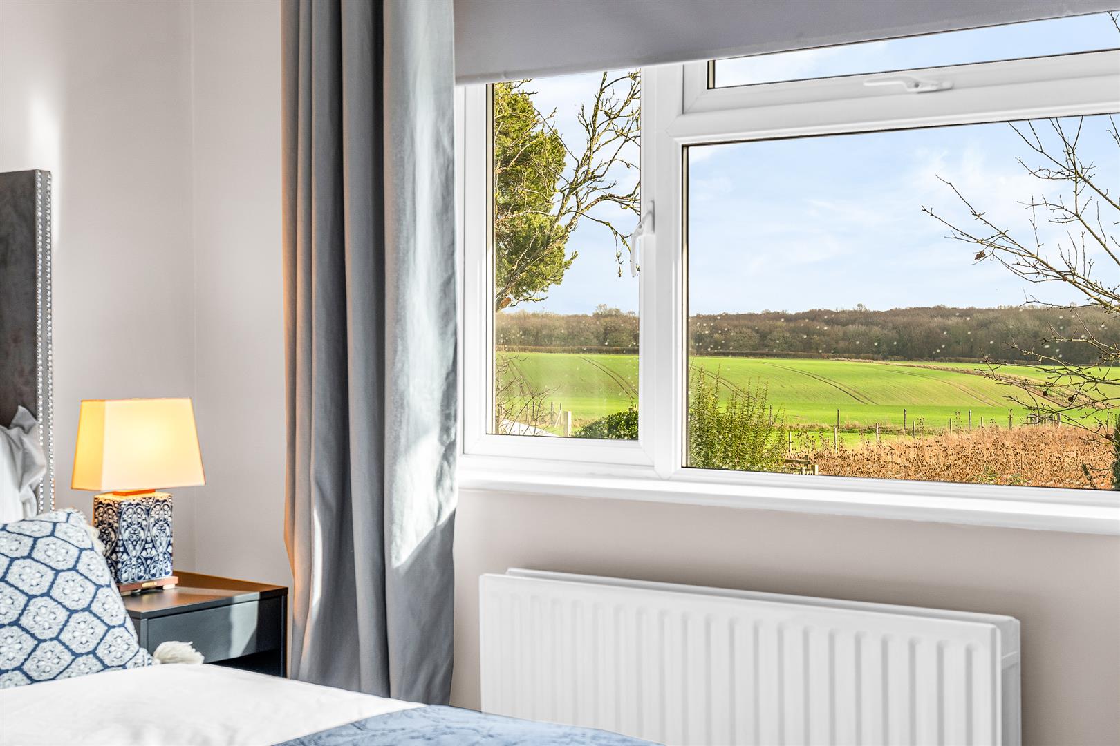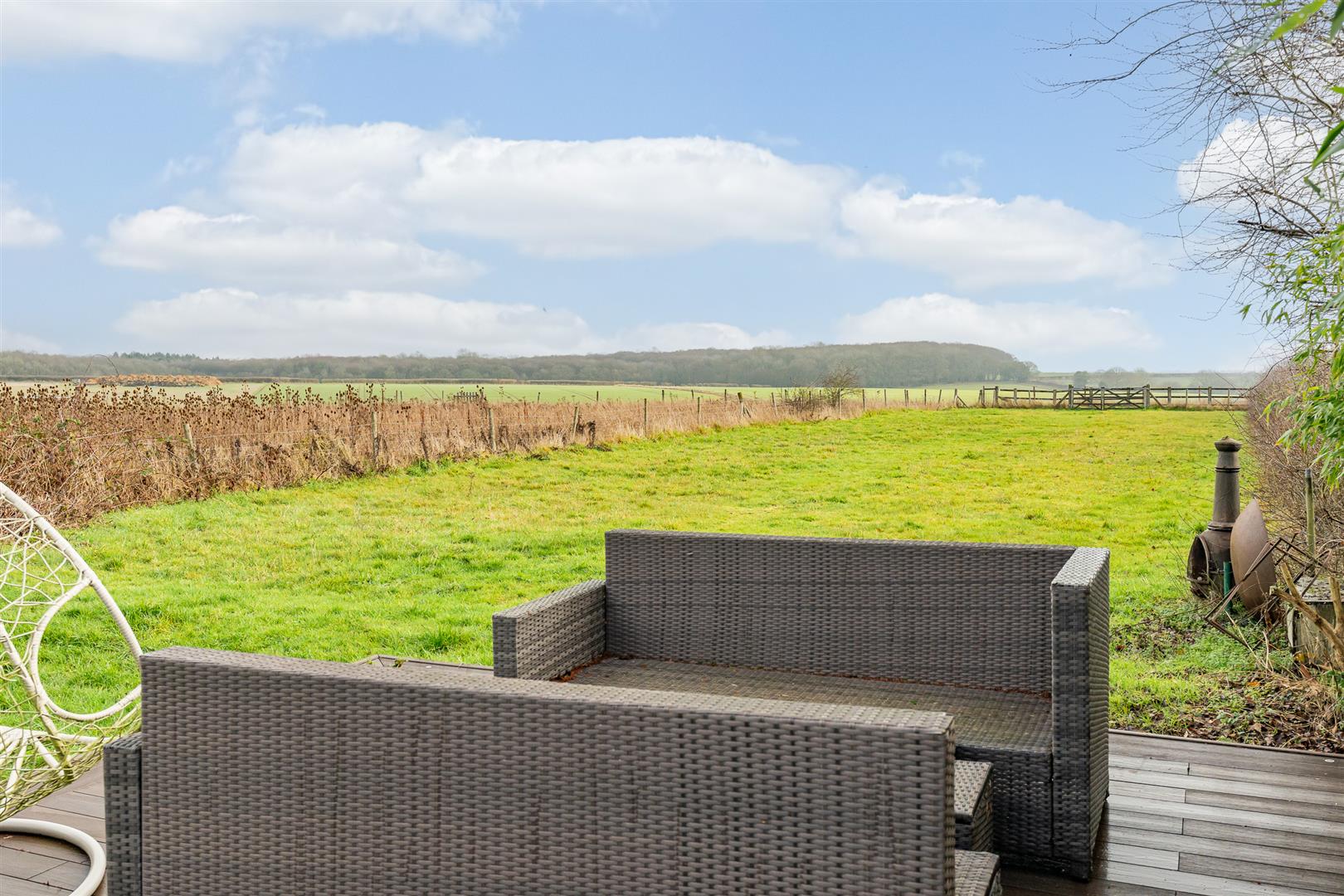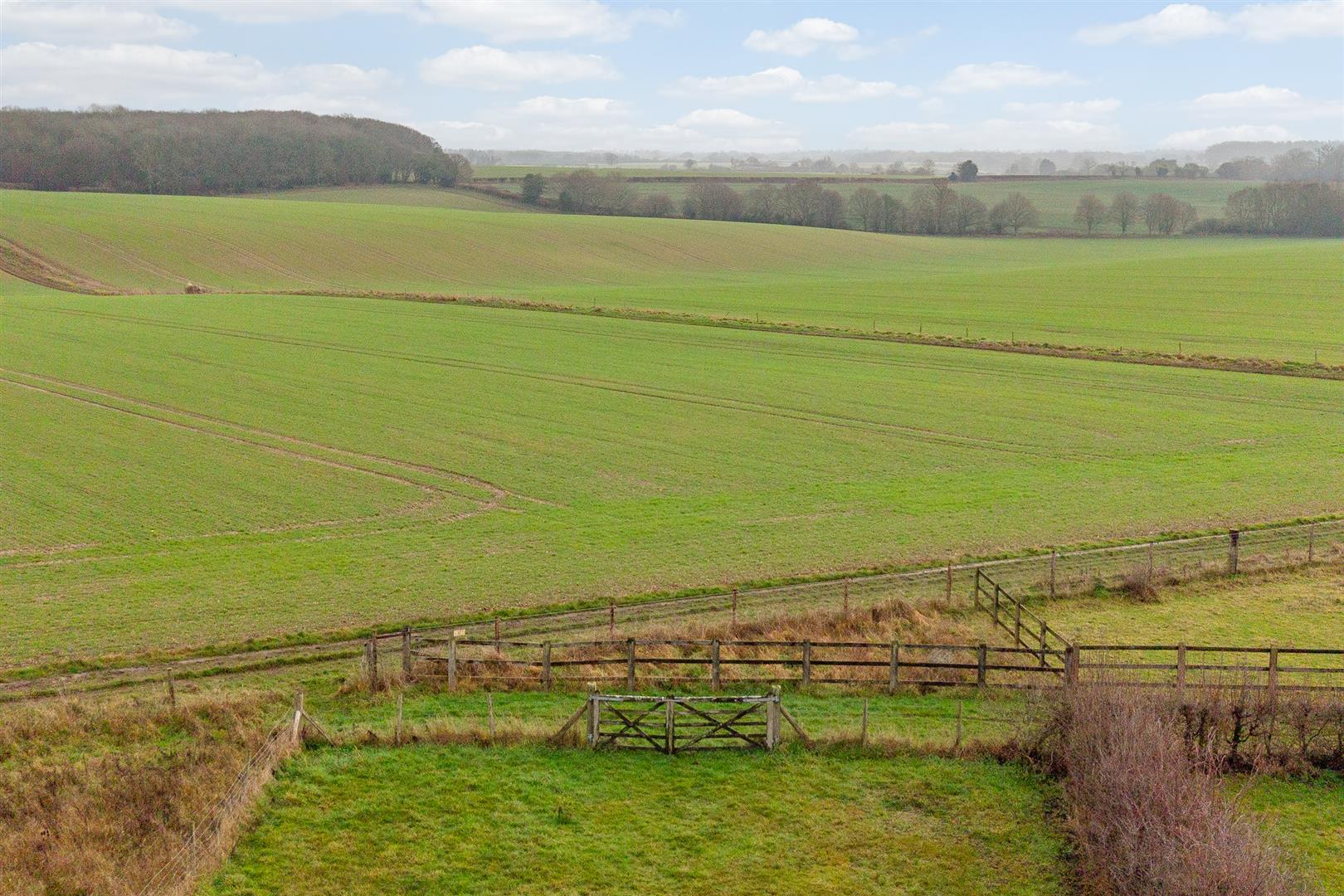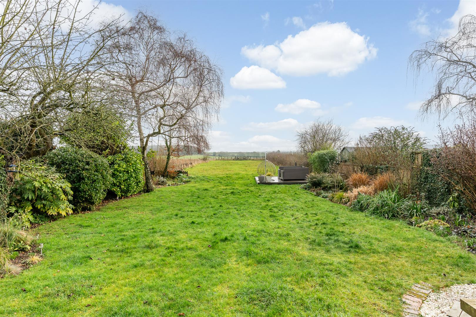 The house is set well back from the quiet road on which it is located, allowing ample parking for multiple cars as the driveway gradually widens towards the house and the detached double garage. Either side of the drive are deep borders of mature shrubs, bushes and some specimen trees. There is a useful separate access from the front into the rear garden, passing the entrance to the utility/laundry room on the way. The rear garden is very large indeed, with multiple patios, one that extends across the back of the house outside the bi-fold doors from the kitchen/dining/family room, and another of raised decking part way back along one side of the perimeter fence. Deep borders run along either side of the generous lawn, fully to the distant far boundary. The rear garden has a wonderful open aspect all around, with open farmland as far as the eye can see. It is just fabulous, a perfect place to relax and unwind, enjoying the fresh air with family and friends.