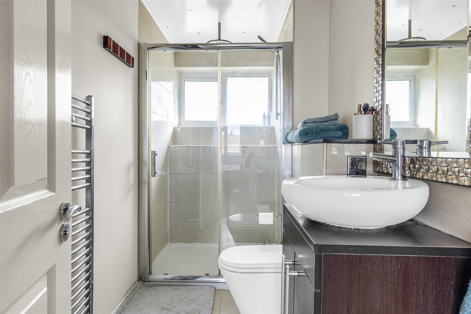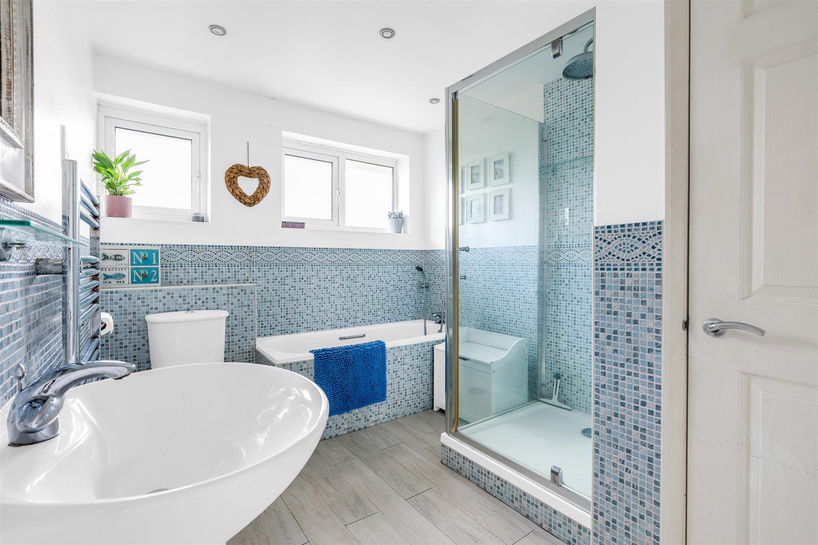 Upstairs is a light, bright upper hallway, nicely galleried over the stairwell, that leads to the four bedrooms and the family bathroom, which enjoys a separate bath and shower along with an extremely attractive mosaic tile design. Two of the bedrooms benefit from fitted wardrobes, with the principal bedroom also boasting a smart en suite shower room.