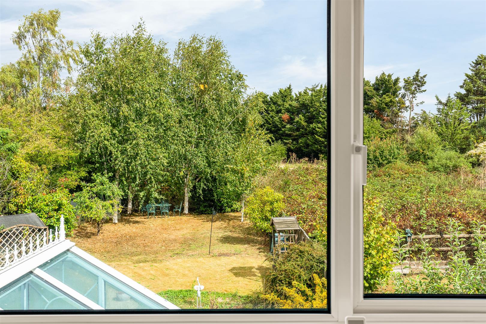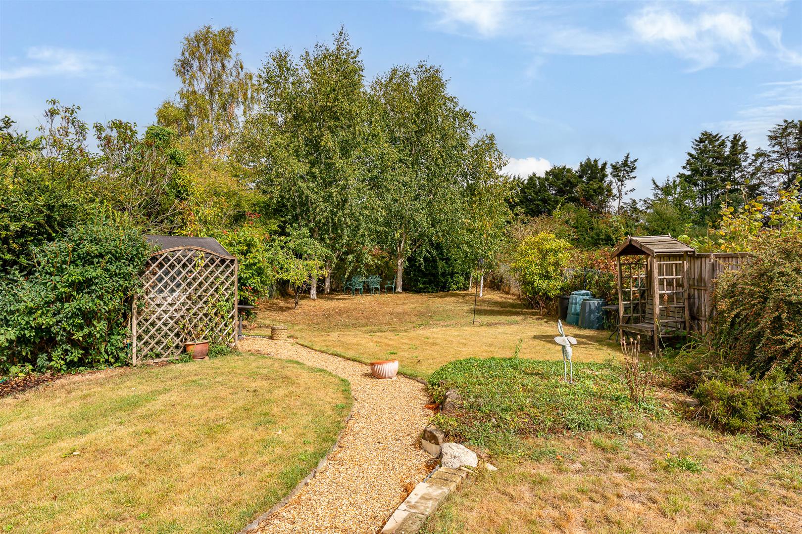 There is ample off street parking on the driveway leading to the large double garage, with an easy opportunity to create more in the planted area of the front garden if needed. To the side of the garage is a gated pathway running past a useful pedestrian door into the rear of the garage and on beyond the kitchen door into the rear garden, which is enclosed and secure so ideal for pets and children. To the rear there is a large garden with a winding gravel path running between nice areas of lawn to a neatly screened shed part way down. Beyond is open lawn interspersed with specimen trees and mature shrubs and bushes giving a wonderful natural feel to the whole space.