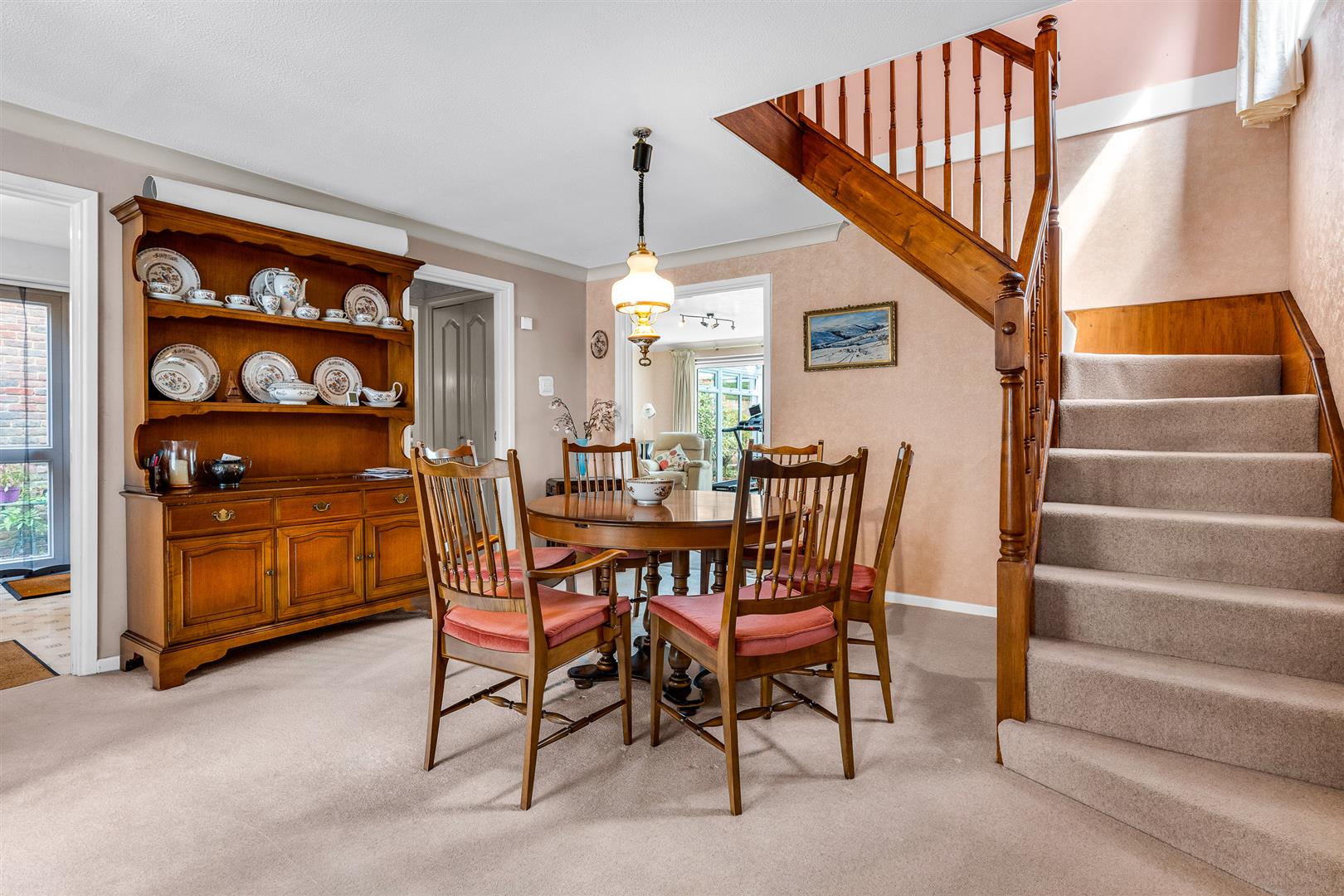 The front door, inset with two decorative stained glass panels, is recessed into a neat protective porch area and opens into an entrance lobby, which in turn opens into the dining/reception room. This is a really nice room, enjoying a virtually open plan connection through to the living room, with doors into a well placed guest cloakroom and the side facing kitchen, along with a pretty multi-panel glazed room divider separating it from the front facing office/study. Despite its central location meaning it has no windows of its own, the dining room remains light and bright throughout the day thanks to the open access to the living room and office/study, as well as the abundant light that floods down through the corner mounted staircase from the window on the landing above. The nice square shape and generous dimensions make the room easily able to cope with a substantial dining suite and other occasional furniture whilst still leaving a nice easy flow through and around the room.