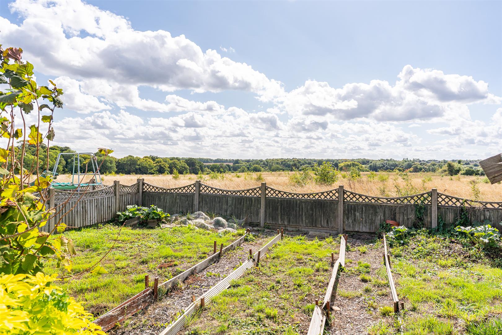 The house is set at the end of a lovely quiet cul de sac which is blessed with lots of open grass areas punctuated by a large number of trees. It is a fabulous, uncluttered environment. The house is reached by a driveway which opens into a large area of block paving and additional gravelled hard standing, which will readily provide off street parking for multiple cars. Low level fencing surrounds the front garden, edged with borders planted with well managed shrubs and bushes. To the rear is a very long garden which overlooks open countryside stretching far off into the distance, and is fully dog and child friendly in that it is fully enclosed and secure. A generous patio spans the full width of the rear of the house, offering a super space for relaxing with friends and family that will easily accommodate casual seating as well as a full dining set. Two brick built raised beds at the edge of the patio are ready to plant, with the garden having a lawn at its centre, edged by shaped raised borders and a wonderfully curved paved pathway that leads to a wooden summer house and a potting shed beyond that. A neat hedge divides the lawned formal garden from a further substantial area beyond, previously used as a kitchen garden, which could easily be opened up to rejoin the main area, with attractive, good quality fencing topped by scalloped trellis panels surrounding the boundary.