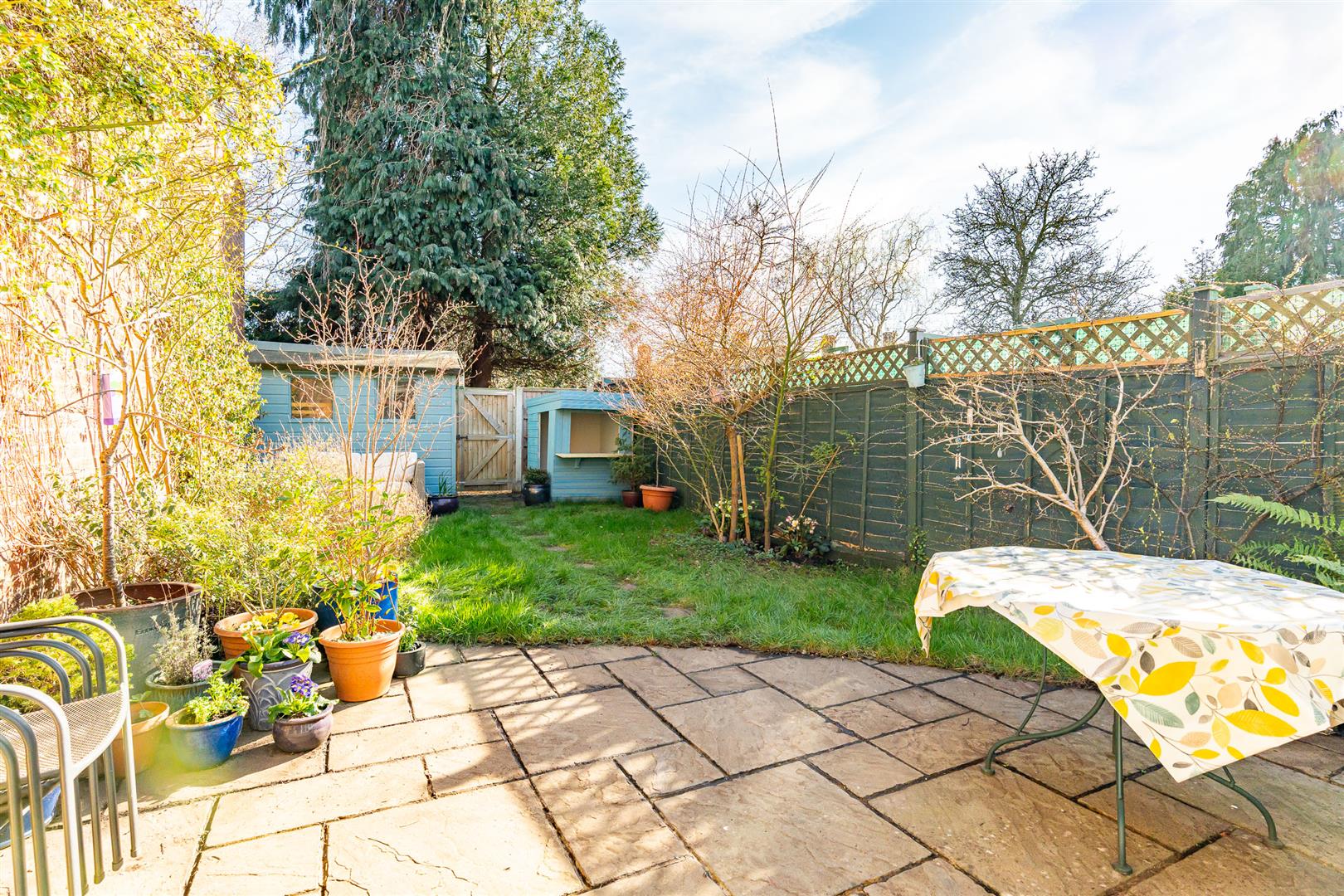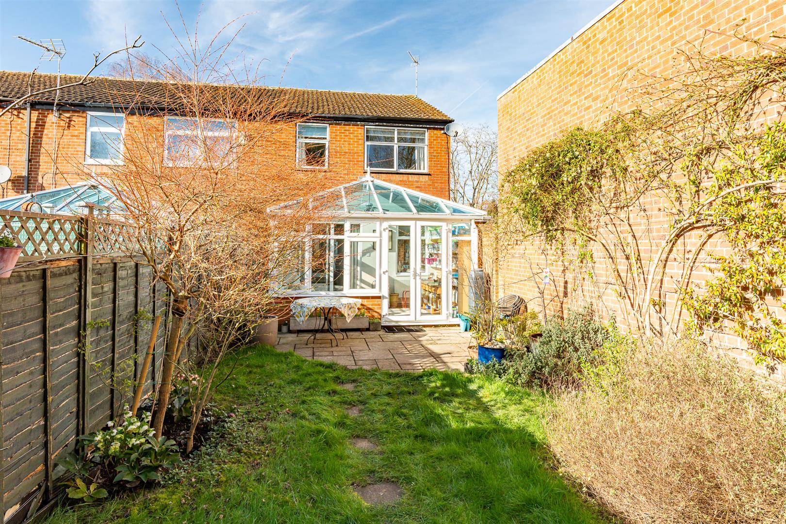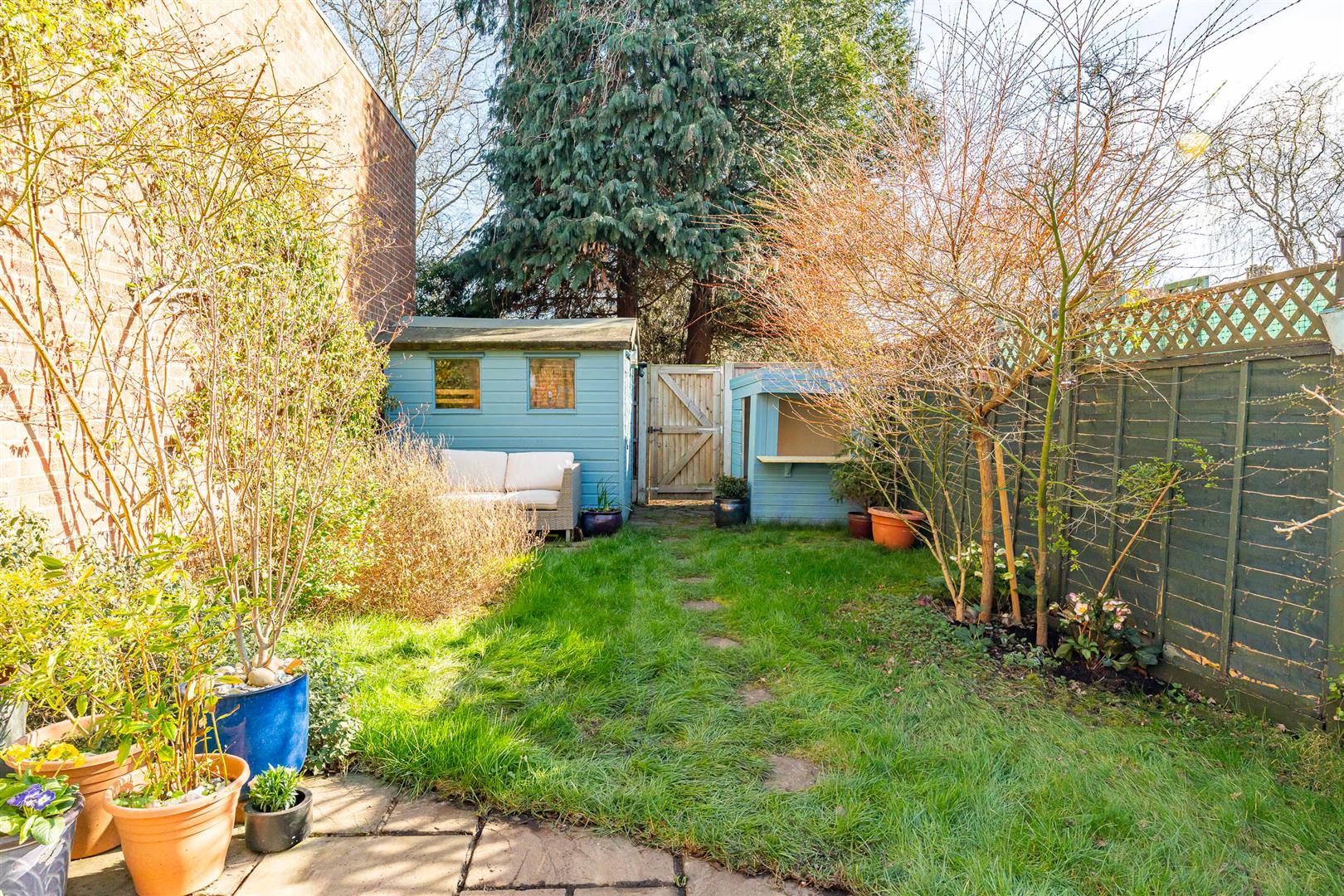 There is plenty of parking available, and a smart front garden that cleverly incorporates multiple bin stores. The rear garden, which is fully enclosed and secure, so perfect for pets and children, is quiet and secluded. Despite the generous conservatory there is still plenty of space for a large paved patio, giving ample opportunity for outdoor seating and dining furniture, which then merges into a good sized lawn. At the far boundary of the garden there is a further patio area in front of a timber shed and a lovely timber playhouse, beyond which is a useful separate gated pedestrian access. This is a great family garden, with room to relax and entertain as well as spending time together having fun as a family.