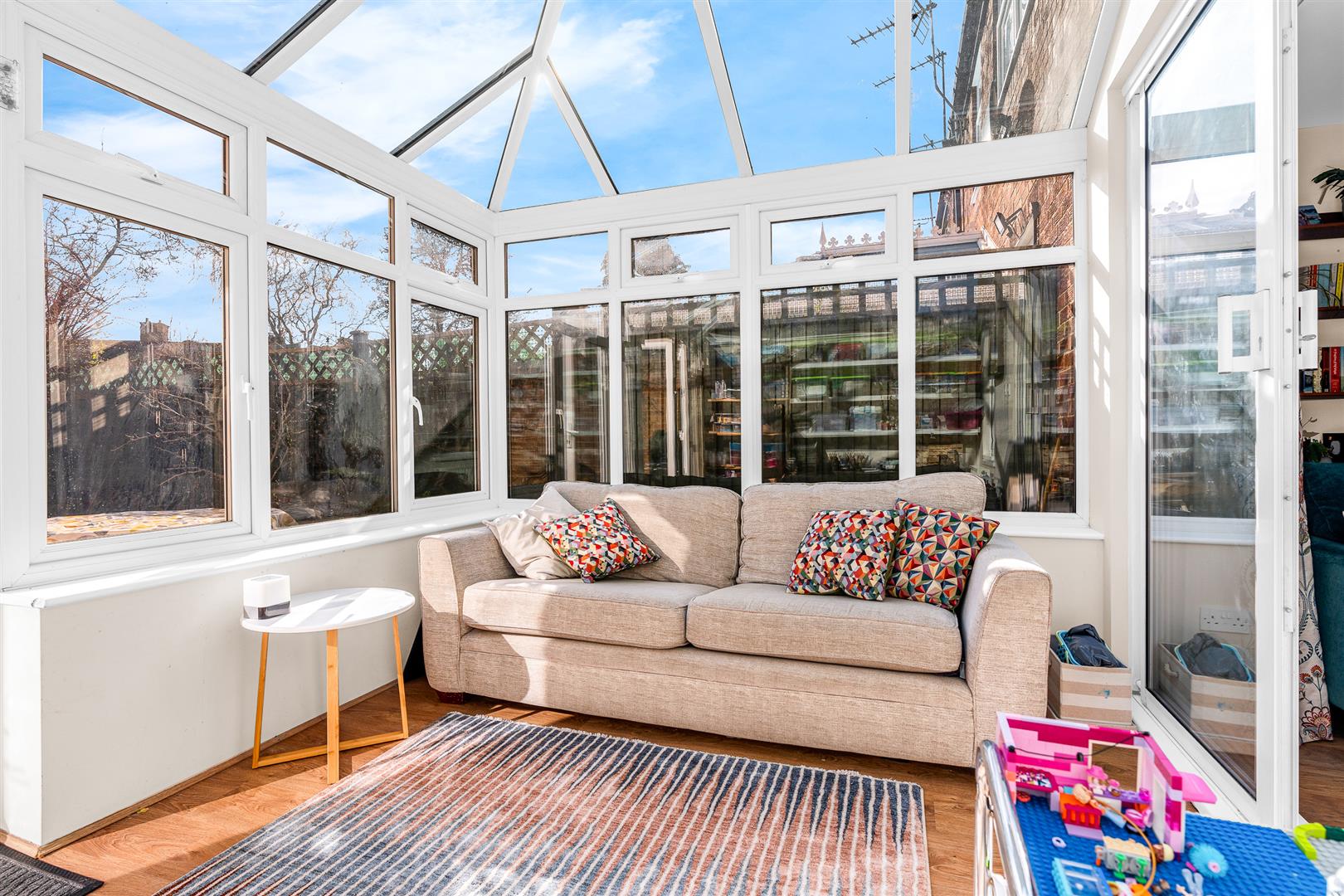 The rear of the main house is taken up by the living room, another large room that allows real freedom of choice as to how it is configured, furnished and used. It is absolutely flooded in natural light thanks to a large rear facing window and a fully glazed sliding door with a full height window alongside it that link out to the superb conservatory. The addition of the adjoining conservatory makes these two rooms fully interchangeable, even season by season if you wanted to, meaning there really is a blank page awaiting your decision on the best role for it to fulfil for you. Certainly the size and shape enable it to easily swallow multiple sofas and chairs, making it a fabulous room for spending time with the family.
