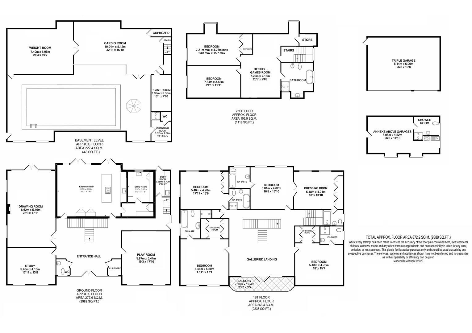 Another staircase from the corner of the landing leads up to the second floor, which contains two further large bedrooms, a family bathroom with separate bath and shower, and a further room which could perform myriad functions for you subject to your family's needs including a games room or den. The whole of the top floor presents a great opportunity to create an "apartment" within the house for young adults still living at home, with a lounge, bedroom and bathroom. Alternatively, it could provide a substantial work from home suite of rooms, or a great chill out space with bar, lounge and games room. If there is a need for live-in staff, this floor would conveniently enable that within the main house, or of course the annexe above the garage can also provide this type of accommodation.