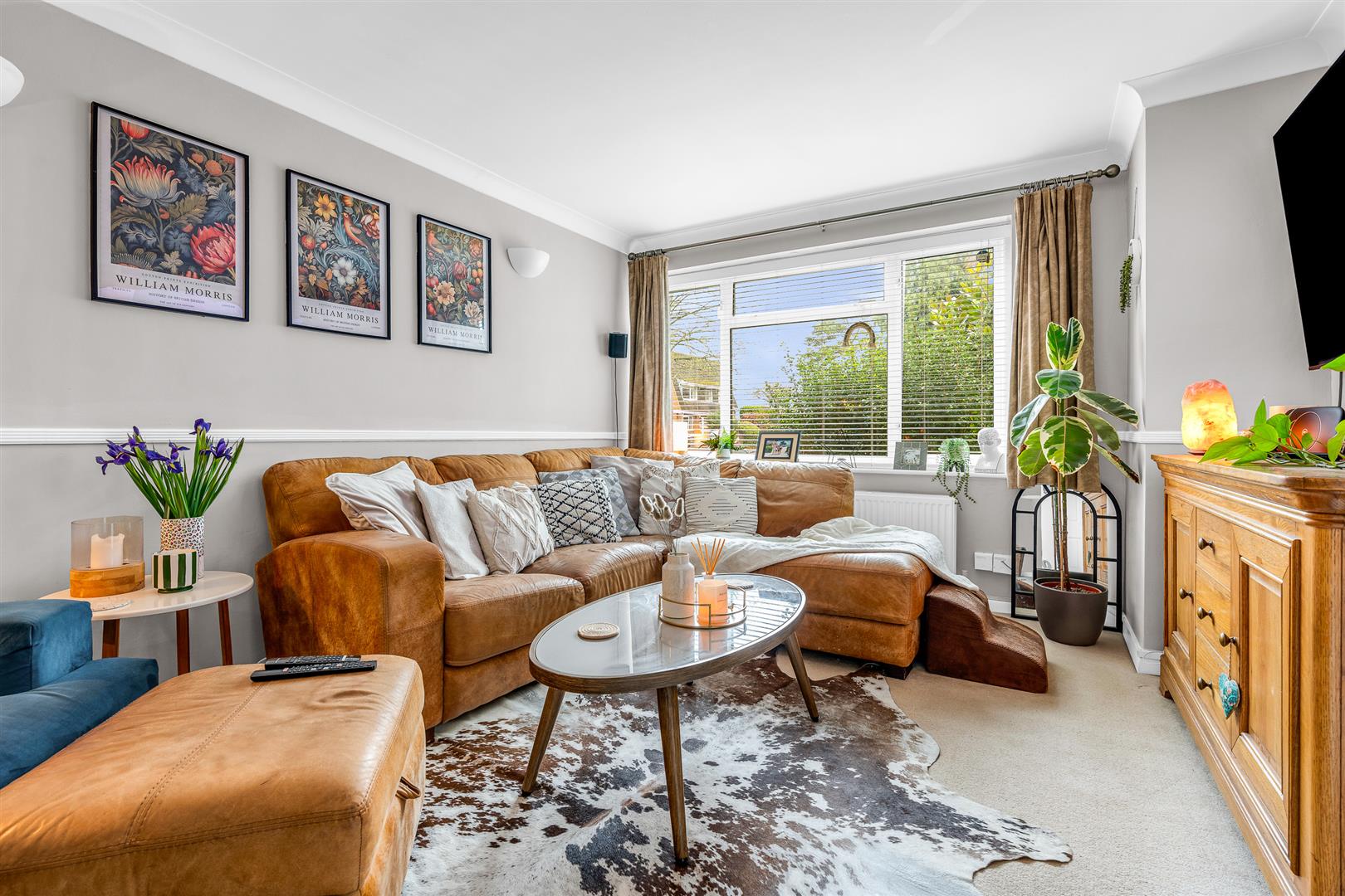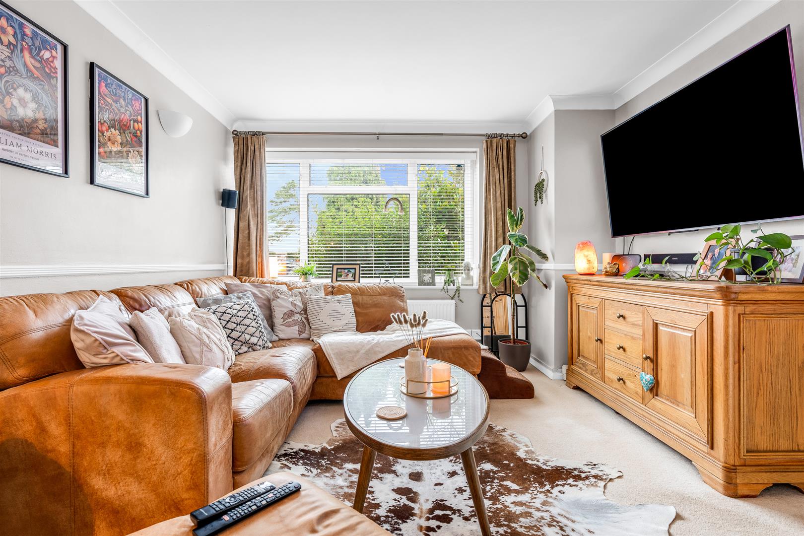 There is a great flow around the ground floor of this house, with the rooms connecting to each other as well as directly out into the hallway, making all of the generous space fully usable on a day to day basis. This asset is immediately evident in the living room, which has a door in from the hallway plus fully glazed double doors linking it easily to the dining room at the rear. The room is a good size and enjoys well balanced proportions, allowing you free choice as to how you configure and furnish the space, and is abundantly lit from both ends thanks to the large picture windows at the front and the glass doors to the rear.