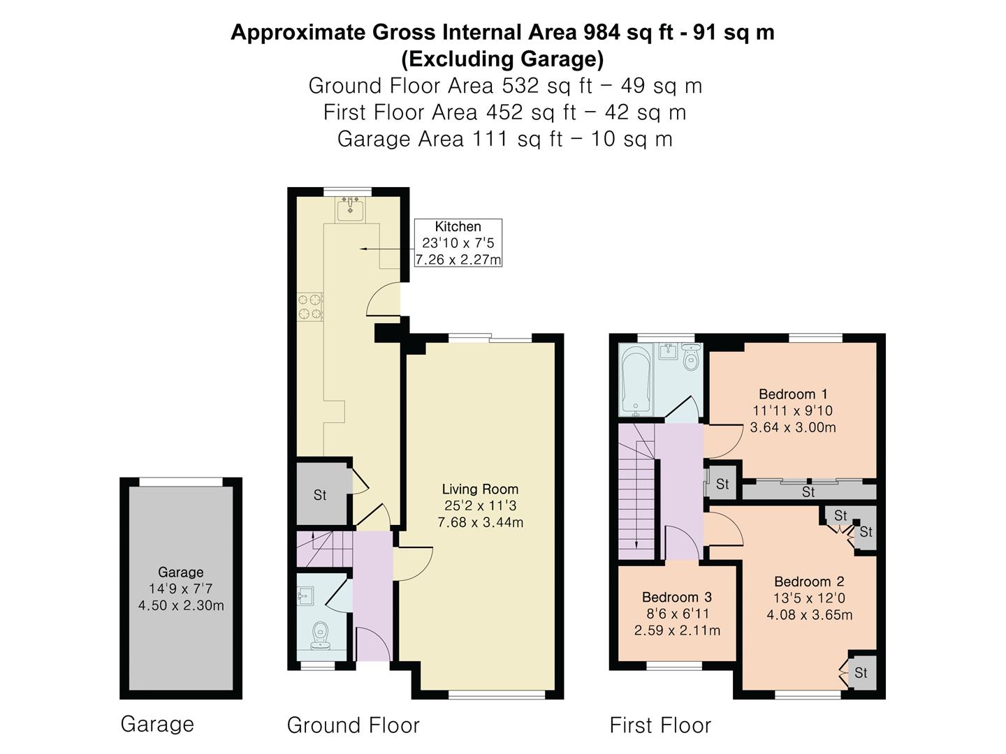 Upstairs is a spacious hallway attractively galleried over the stairwell that leads to the three bedrooms and the family bathroom, which is fully tiled and has a bath with a power shower and screen above it. Two of the bedrooms are spacious doubles boasting fitted wardrobes.