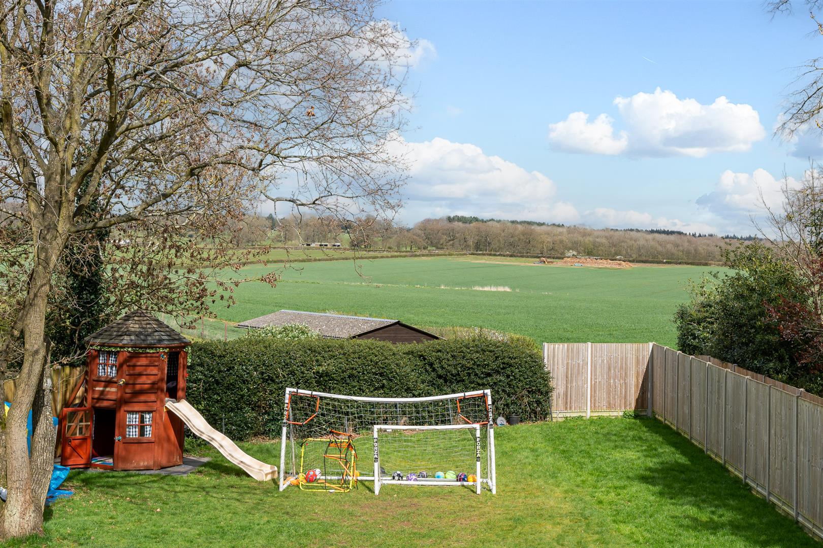 The house enjoys a fabulous rural setting, surrounded by open countryside, yet within a few minutes of the vibrant centre of Tewin village. Being set well back from the road allows a long sweeping driveway to reach up to the house and garage, providing plenty of off street parking. A separate gated access gives direct ingress from the driveway to the substantial rear garden, which is fully secure and enclosed and so ideal for pets and children. A neat paved patio runs the full width of the rear of the house, linking the access points from the living room and kitchen, before extending back some way along one side of the garden. This makes a fabulous area for outside dining and seating, comfortably large enough for a number of family members and guests to enjoy the delightful open aspect all around. The lawn extends the full length of the garden, ending in a mature hedge at the far boundary, and beyond that the views cascade across open fields to a tree line far away in the distance. An absolutely wonderful place in which to relax, unwind and socialise with friends and family.