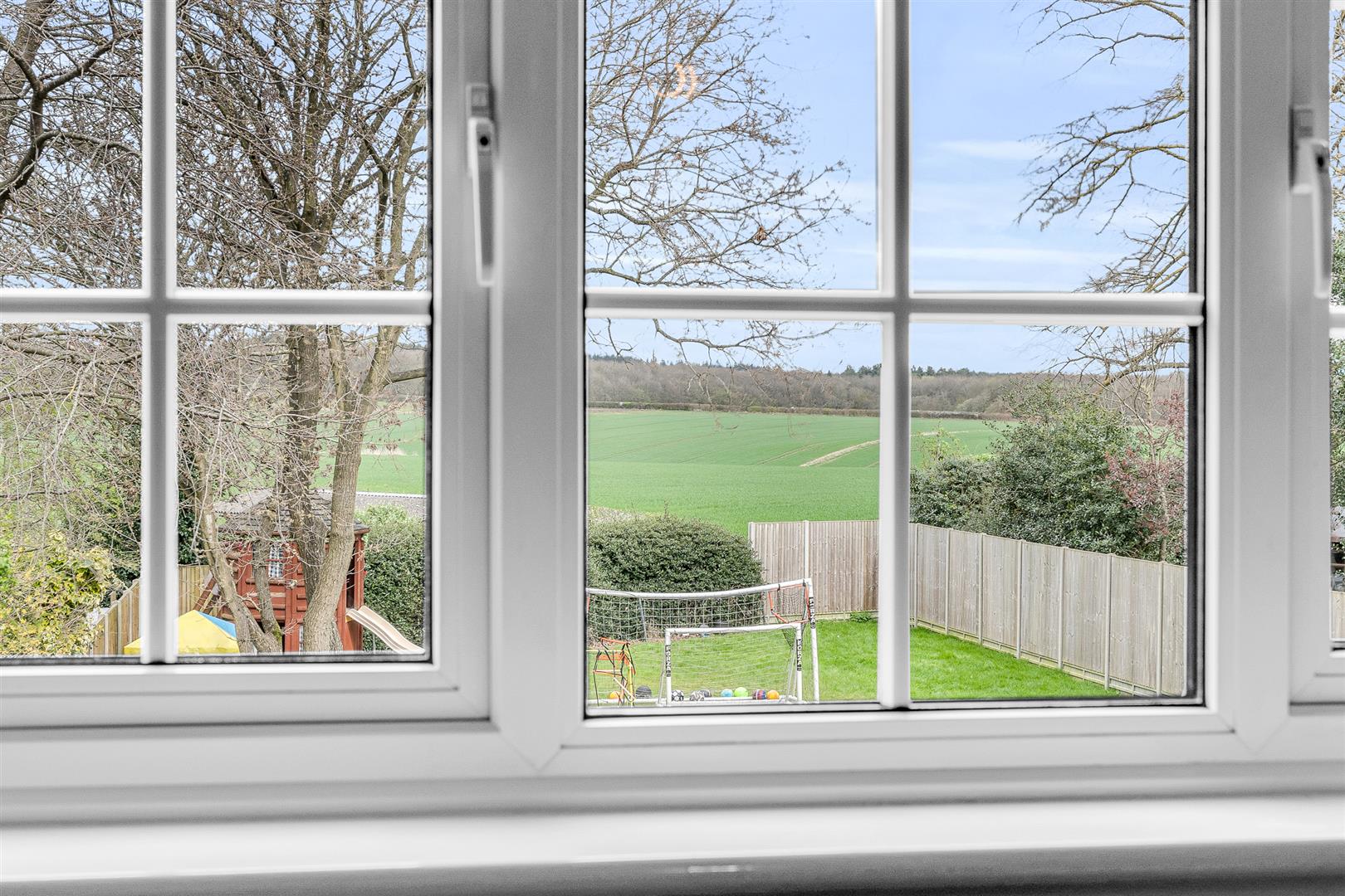 The adjacent living room is a large room by any standards at over twenty feet long, and enjoys a great connection out into the rear garden via a fully glazed door set alongside a full height rear facing window. A further window overlooking the rear garden helps keeps the room light and bright, as well as welcoming in the fabulous views along the garden to the open countryside beyond. There is an abundance of space in the living room, giving you innumerable options as to how to configure and furnish it to best suit your needs. Be assured that it will easily accept multiple sofas and chairs along with a number of other pieces of occasional furniture and still leave plenty of open floor to ensure a smooth and easy flow in, around and through the room. A great room for day to day family life, however large your family, and a real boon when entertaining guests.