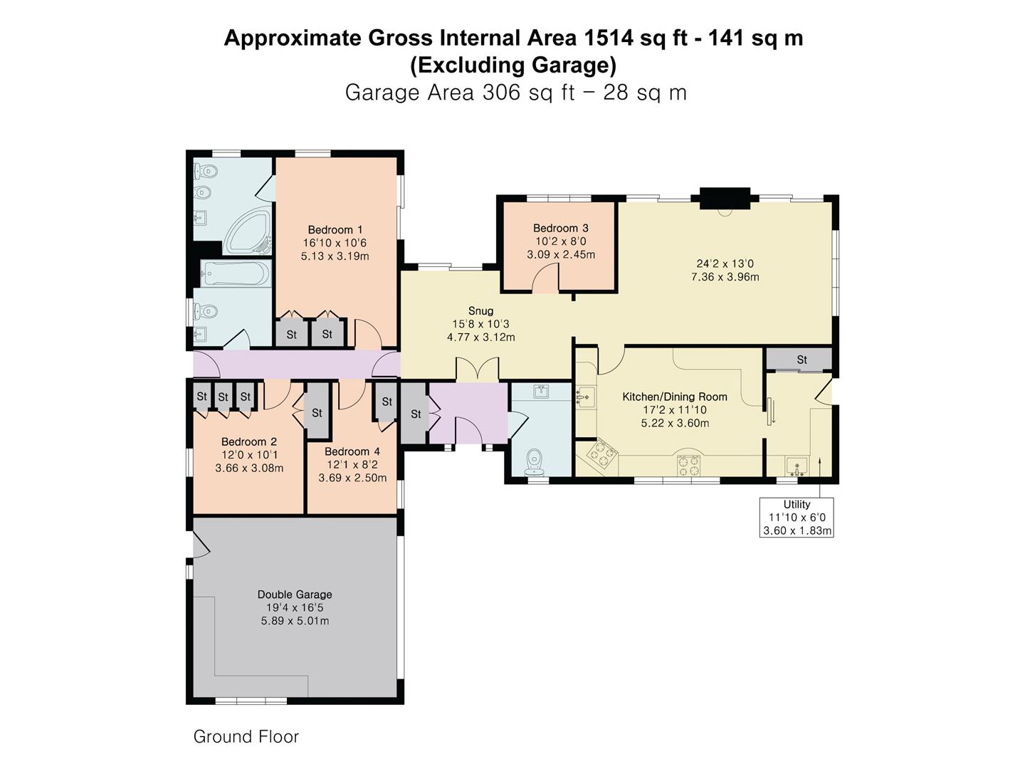 Adjacent to the living room is the smallest bedroom, which occupies a position that makes it perfect as an office/study or playroom should four bedrooms not be required.