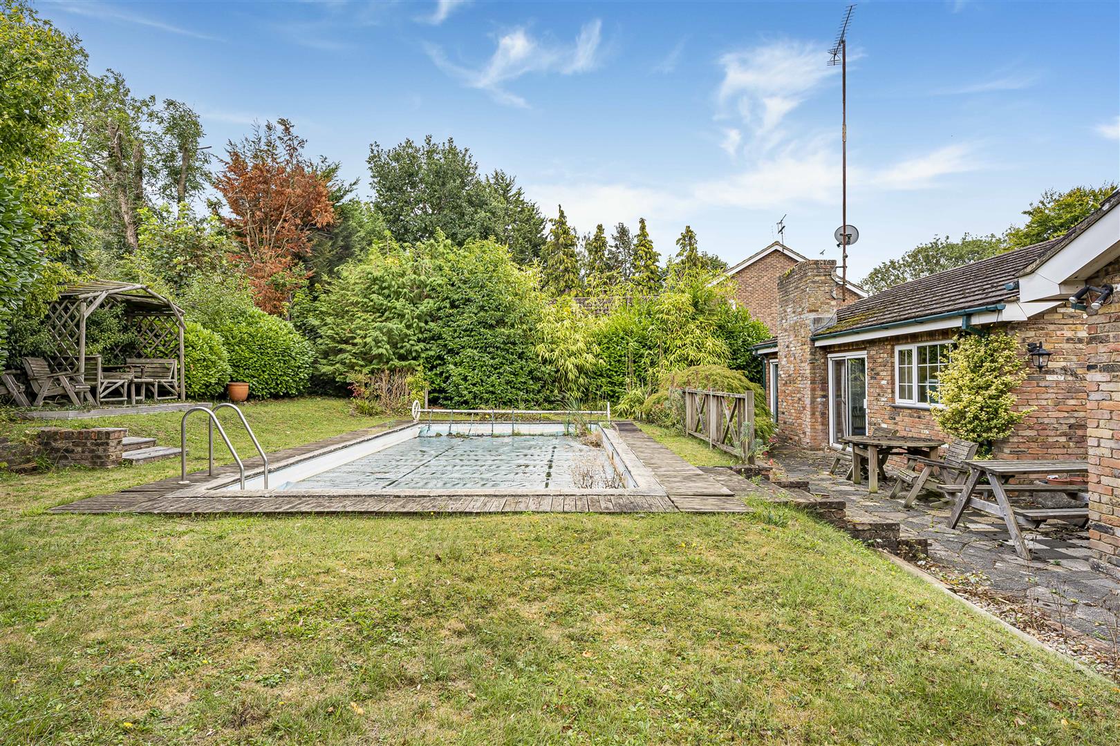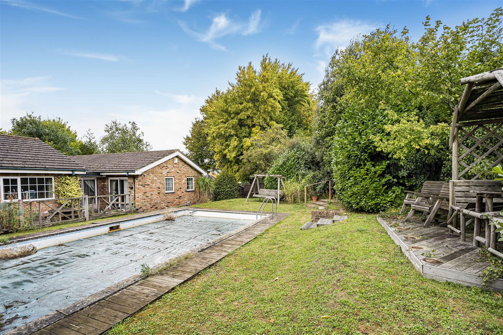 The house enjoys a lovely, quiet, sheltered position, accessed by a private shared driveway that extends from the road and enters the spacious frontage through an opening between tall, mature hedges. There is extensive space for parking and turning within the generous block paved driveway that nestles between the house and the attached double garage which also features a nice area of grass with bushes, shrubs and a fabulous apple tree. To the rear there is a good sized garden, nicely landscaped into terraces that follow the gentle natural slope. A patio area runs across the back of the house, extending into a courtyard to the rear of the reception room, with the large swimming pool occupying the centre of the garden. Beyond and around the pool there is plenty of grassed areas as well as a summer house and a further terraced area that is just ideal for casual seating and dining al fresco.
