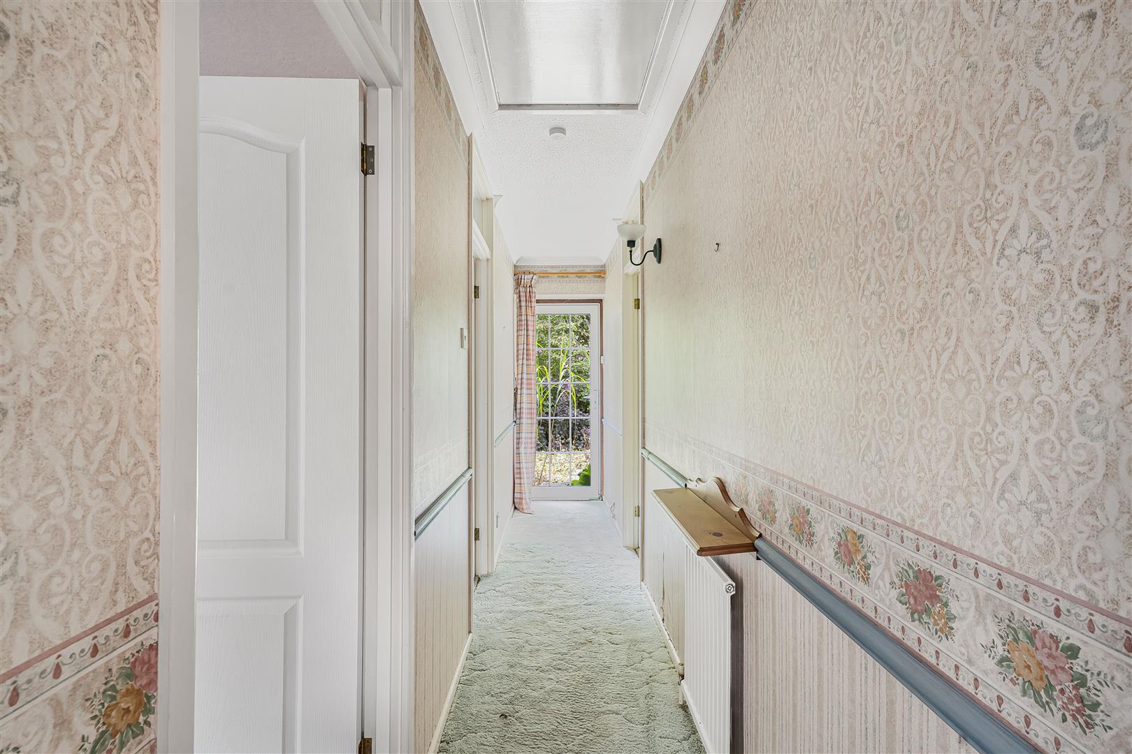The architect has done a splendid job in making this bungalow light and bright throughout, with large windows, often across multiple aspects, allowing maximum light to flow in and around the interior, and this begins with the front door which is generously part glazed and flanked by matching windows either side. Inside is a neat entrance lobby with a large cloaks cupboard and access into the well placed guest cloakroom, which is large enough to become an additional shower room if so desired. From the lobby double doors open into a lovely reception room that occupies the central part of the house, effectively splitting the day to day living area from the more private bedroom area, as well as opening through sliding glass doors out onto a courtyard to the rear which leads onto the patio and the swimming pool area. The reception room is absolutely flooded with natural daylight thanks to the glass doors to the rear, further enhanced by a substantial roof light set into the ceiling above. A wonderful space for ensuring all of your guests receive a warm welcome into your home. From the reception room a doorway leads into an inner hallway serving three of the bedrooms and the family bathroom, as well as an external door opening out into the rear garden, whilst in the other wing of the house is found a fourth bedroom and the kitchen/dining room, with an open plan connection beyond into the substantial living room.