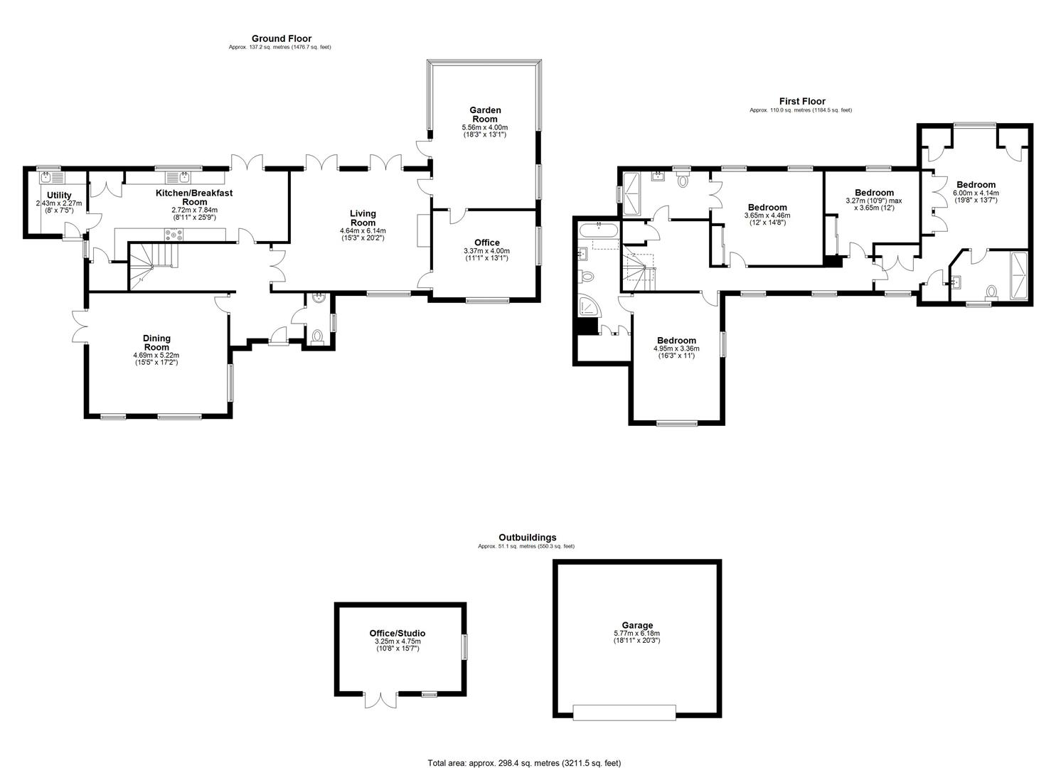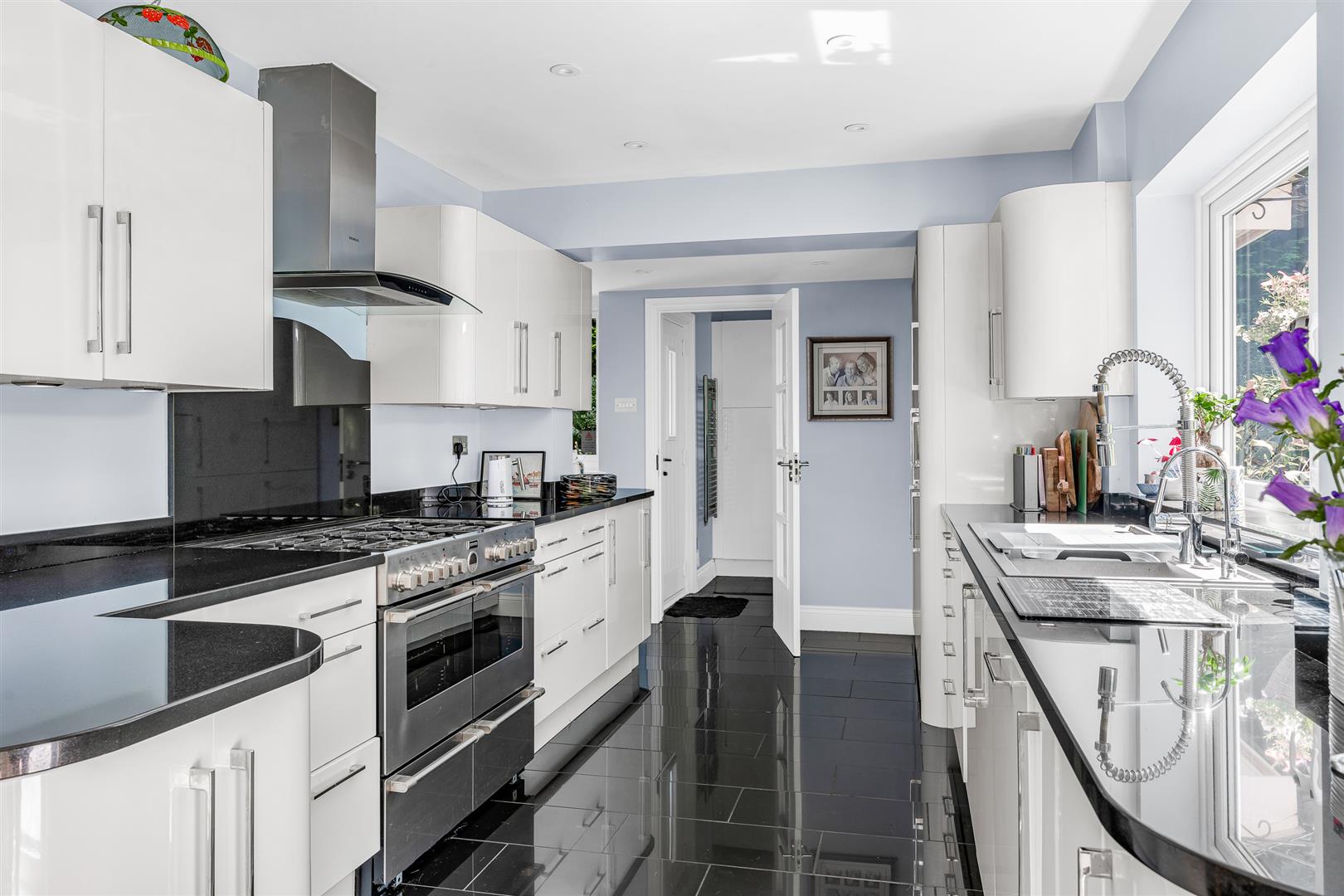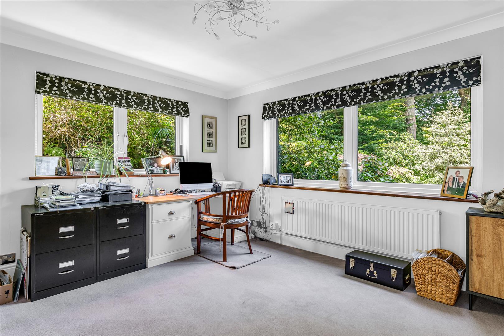 Either side of the fireplace doors open from the living room into the office and the garden room, which also conveniently link directly to each other, enabling a great flow around the rooms. The office is large, being thirteen feet by eleven feet, and well lit by windows to the front and side. Certainly big enough for multiple desks this could easily provide a comprehensive business hub if needed, but would alternatively serve as a delightful snug/TV room for the family.