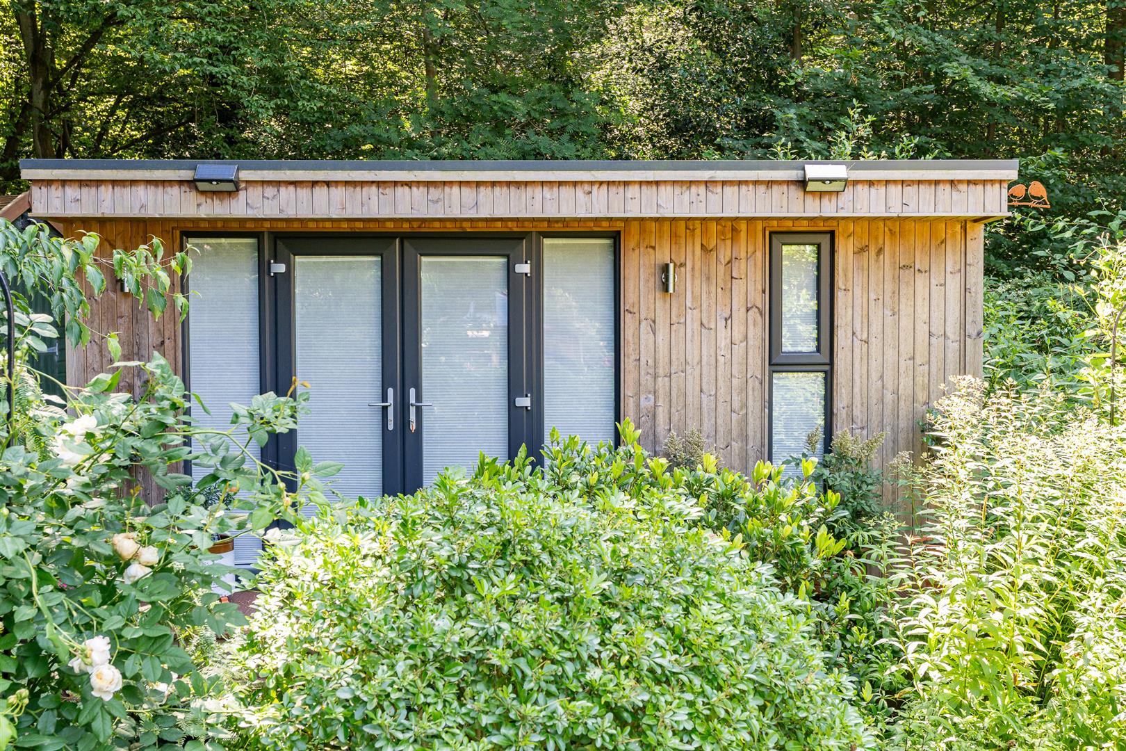 The double garage/workshop is conveniently located near the entrance gates and has additional parking bays alongside it. Nestled within the planting in the rear garden is a delightful detached garden room which would be a wonderful place for an office, gym, workshop or arts/crafts studio. Surrounded by the wonderful gardens and woodland, creative inspiration would never be far away!