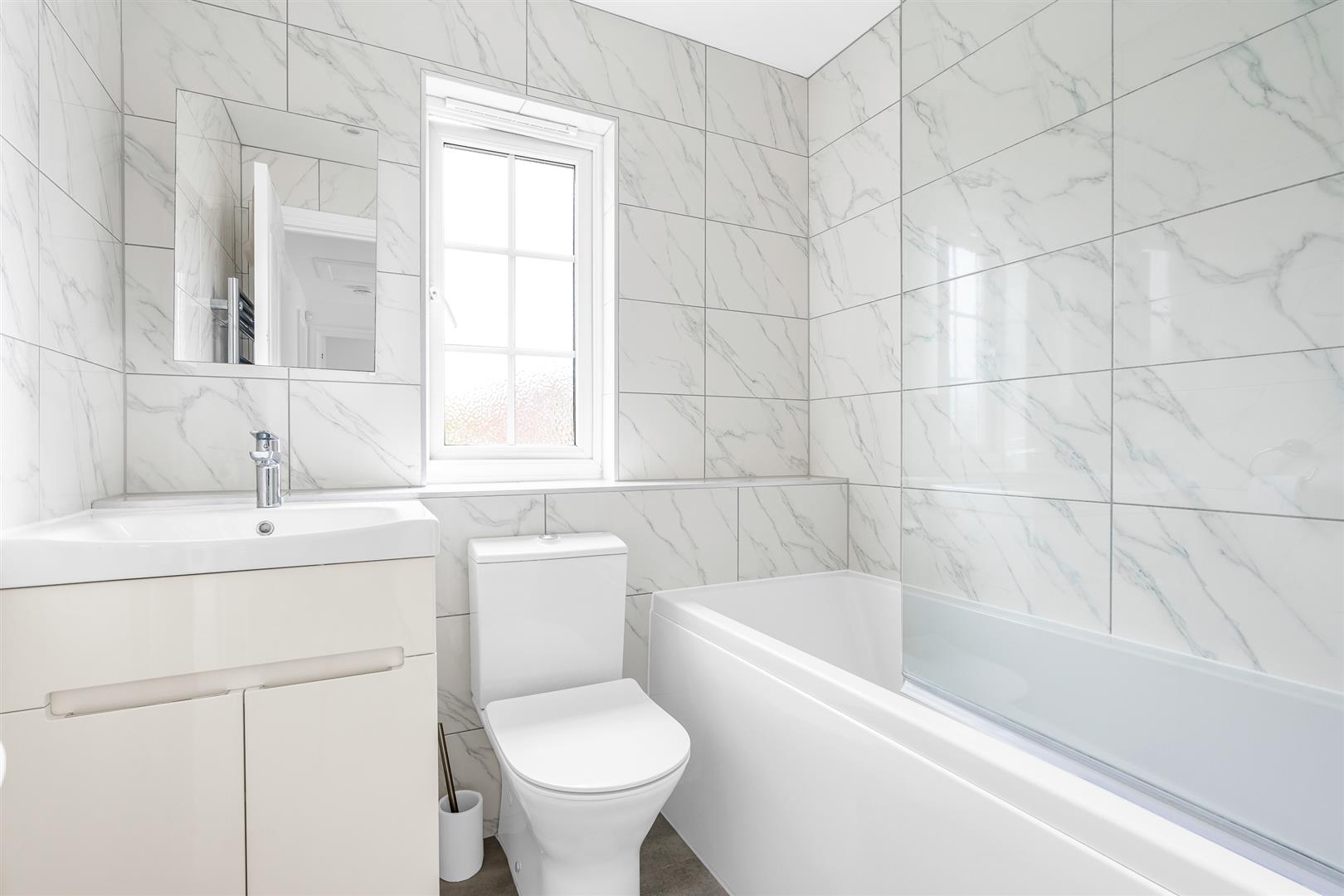Upstairs there is a nice upper hallway, galleried over the stairs and well lit by a side facing window, from which doors lead into each of the three bedrooms and the fully tiled family bathroom, which has a bath fitted with a shower attachment and screen. Two of the bedrooms are comfortably doubles in size and both benefit from built in storage cupboards. The rear facing bedroom also has a fully tiled en suite shower room.