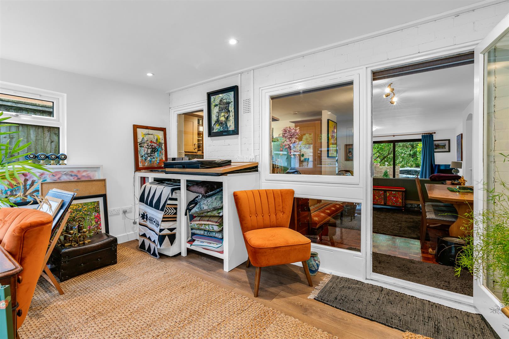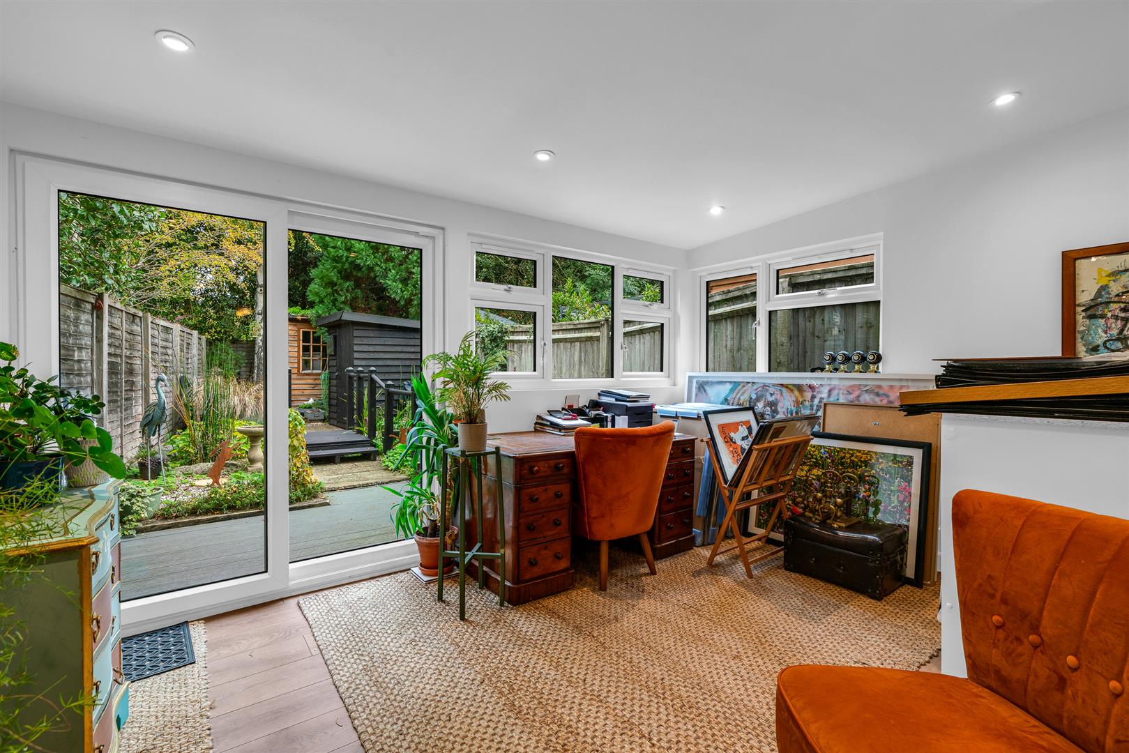 To the rear is the fabulous family room, a premium quality installation making it a fully integrated and valuable extra room for every day, all year round. A combination of good size and well balanced proportions make this a very usable room, again with many options as to how it can be utilised to best serve your family's needs, whether that be a day lounge, garden room, office/study, playroom or a spacious dining room. The room is bathed in natural light thanks to the windows to two separate aspects, further enhanced by the rear facing glazed sliding doors.