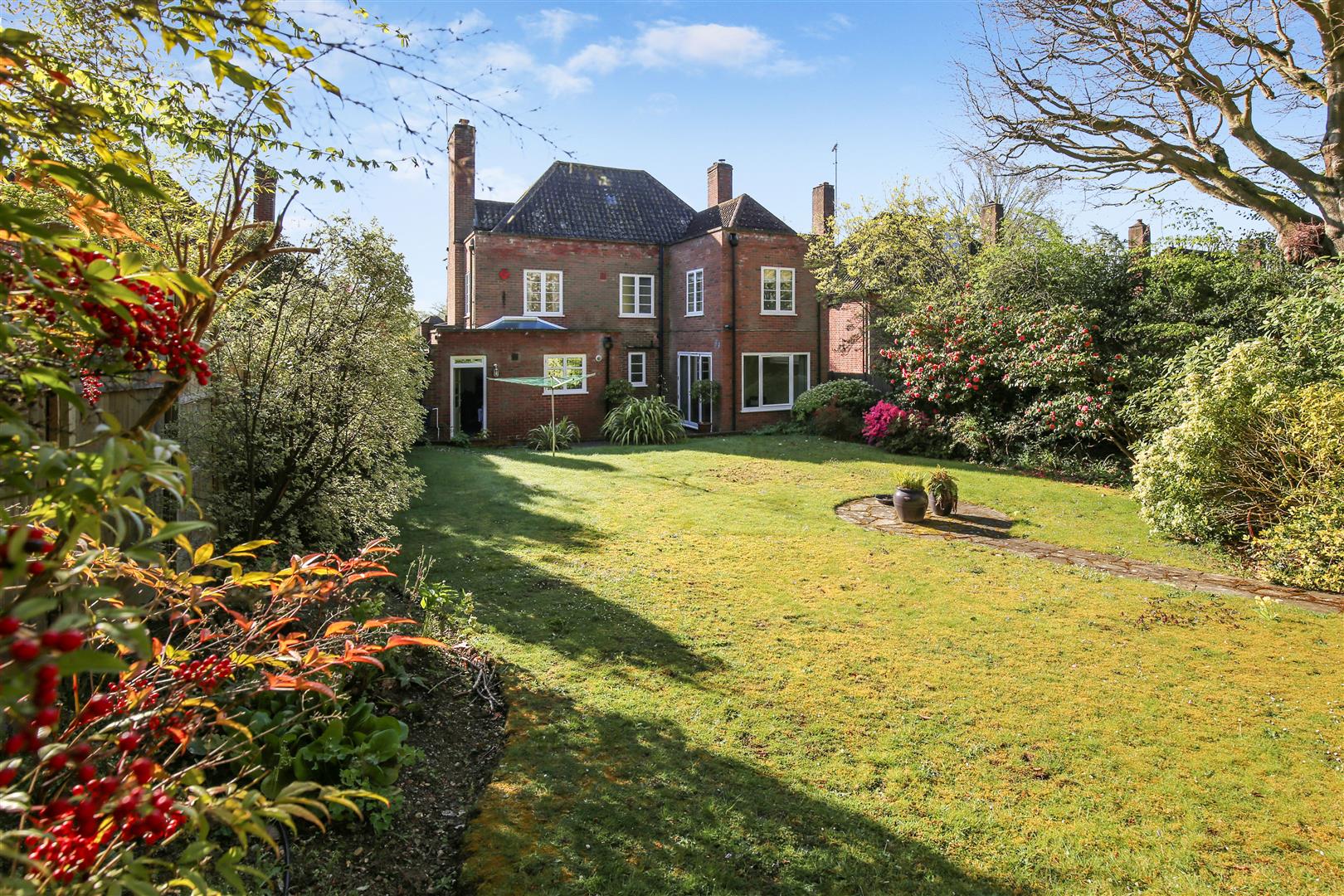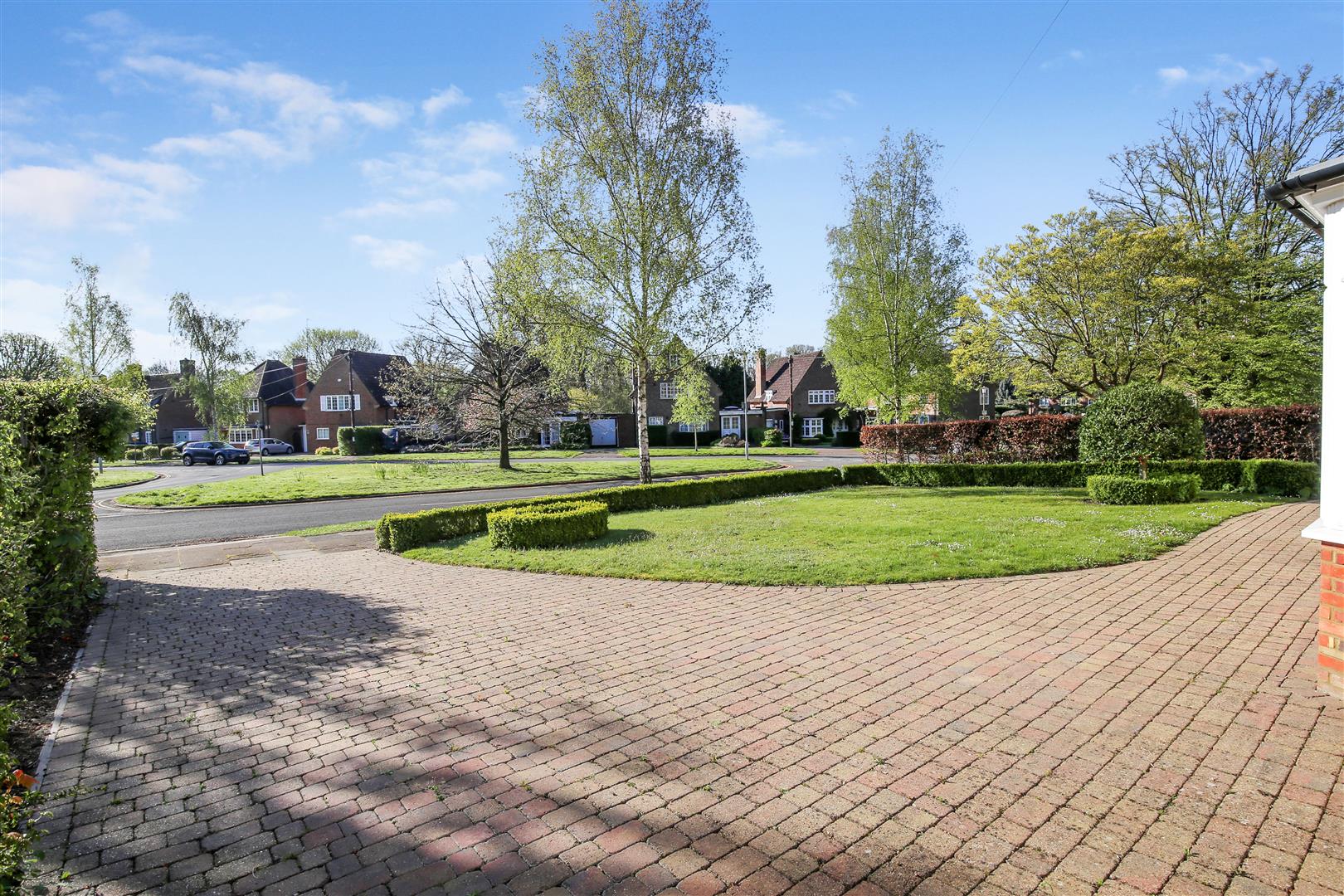 The imposing house is surrounded by other similarly large houses and is set well back from the road, with plenty of off-street parking on the block paved driveway as it sweeps around the large well maintained front lawn edged with low level hedging.