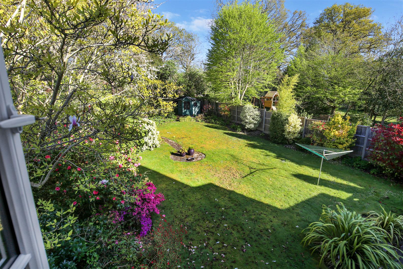 and dining furniture. Beyond the patio is a pretty, shaped lawn with deep flower borders surrounding it, filled with mature well kept plants, shrubs and occasional specimen trees, with a lovely timber summer house in the far corner.