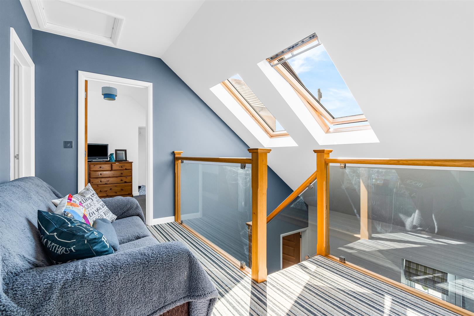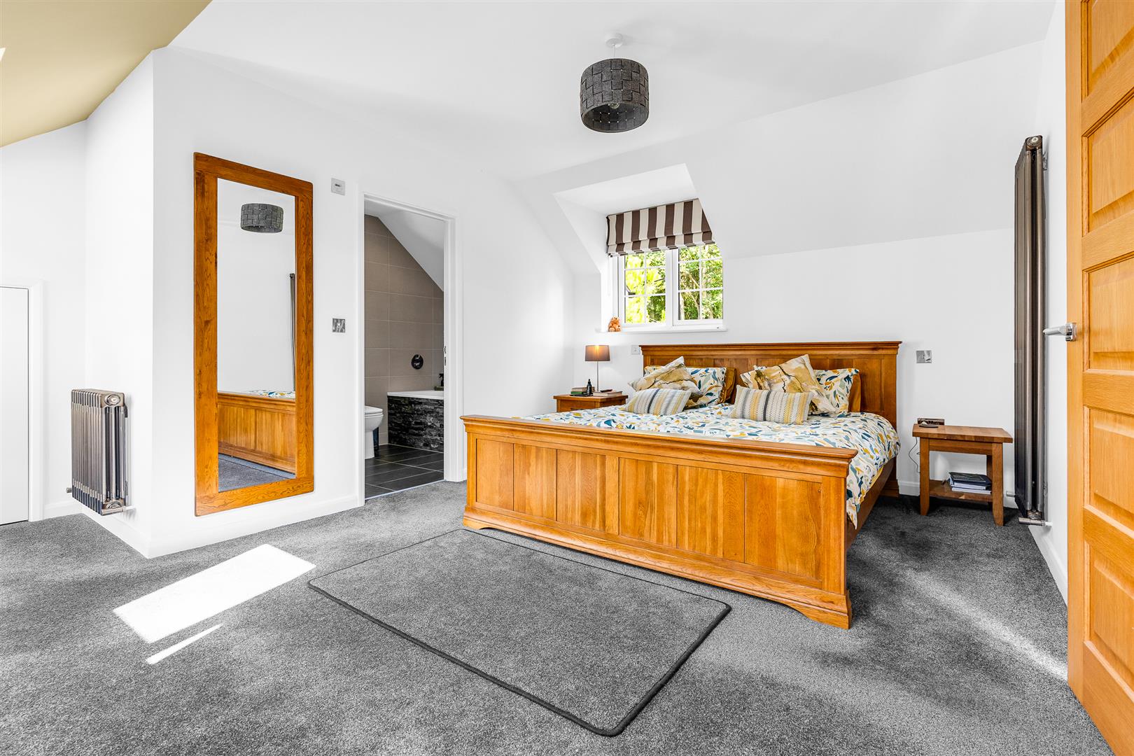 Upstairs there are three double bedrooms and three bathrooms. The principal bedroom has multiple built-in cupboards and a luxury ensuite bathroom with separate bath and shower, and there is a further bedroom with a full wall of fitted wardrobes and a lovely ensuite shower room. The third bedroom has a fully connected ante-room, actually larger than the bedroom itself and fully interchangeable with it in terms of usage. These two rooms make a lovely suite, which would work really well as a bedroom and playroom, lounge or dressing room, so perfect for family members of any age who may benefit from some private space yet remain nicely connected to the rest of the house.