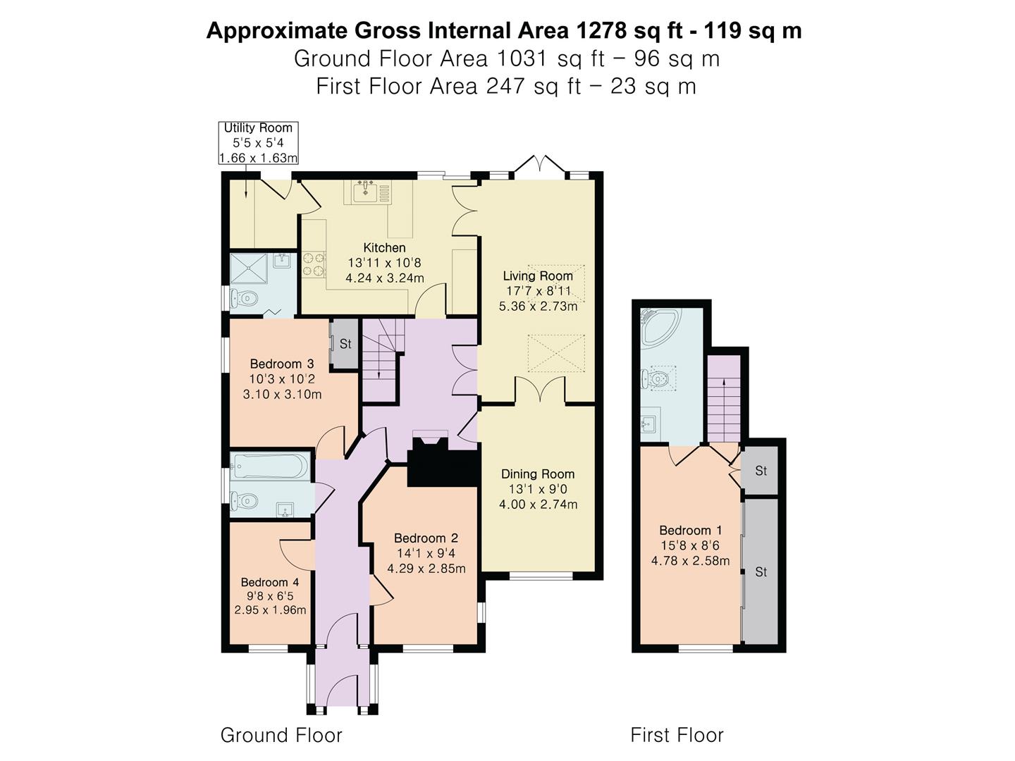 Two of the three ground floor bedrooms are comfortably double in size, with one of them benefiting from fitted wardrobes and an en suite shower room. The third bedroom is a generous single, which would also give great service as a home office should there be a requirement to work from home. The family bathroom is set between the bedrooms for ease of access and features a bath with a shower attachment and screen.