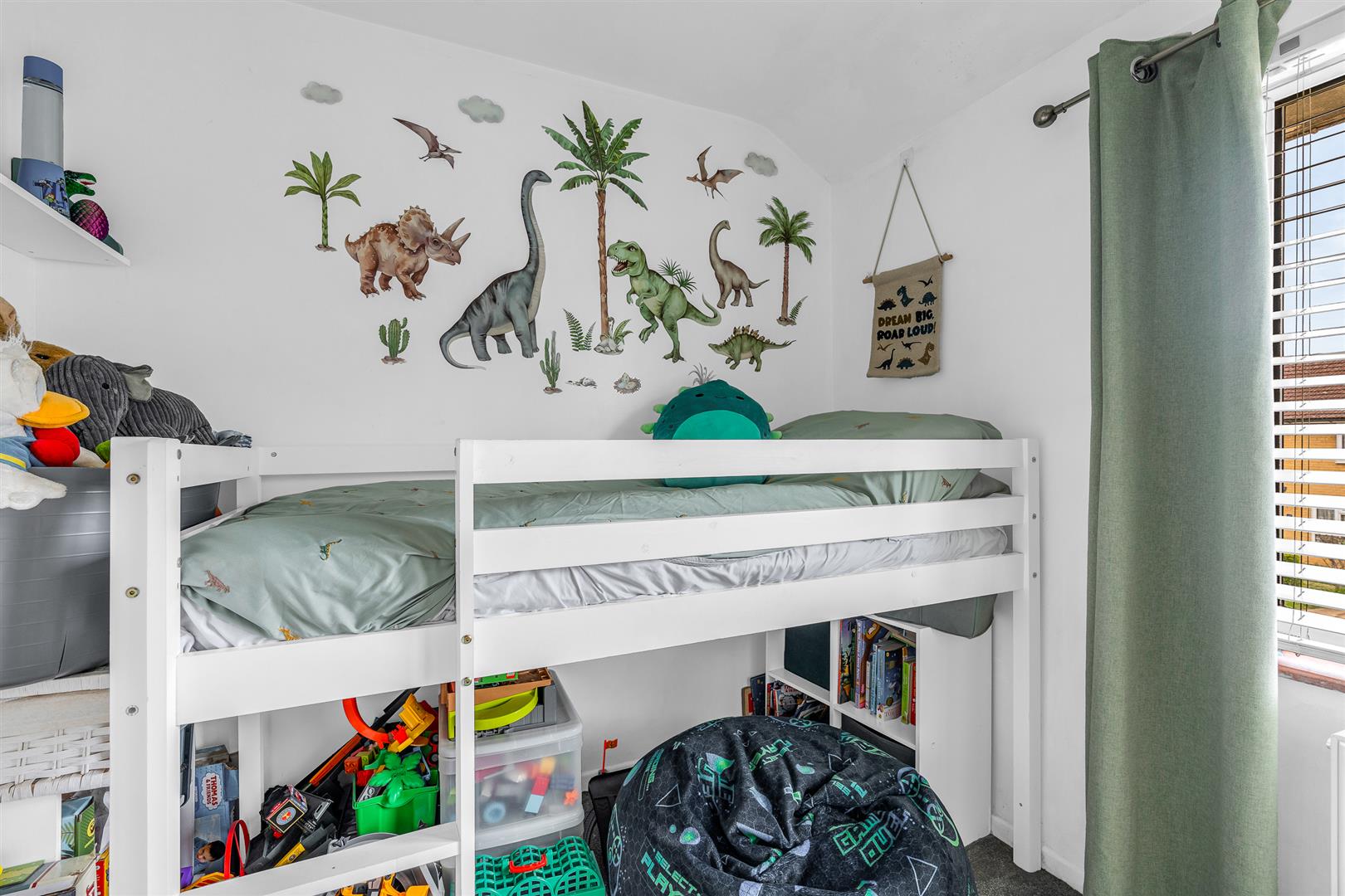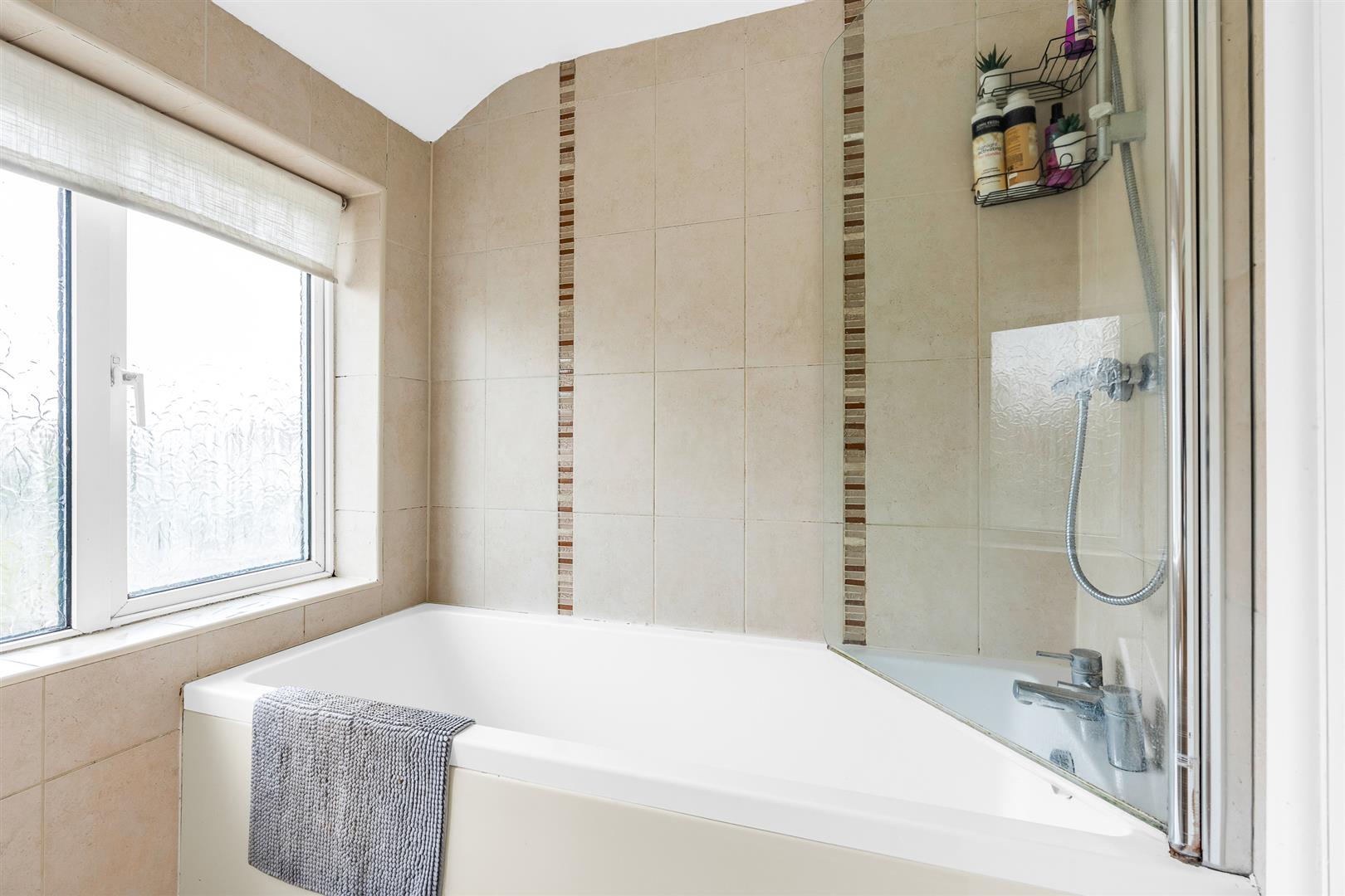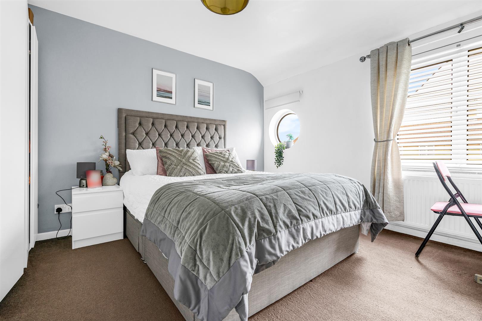 Upstairs is a spacious hallway, attractively galleried over the stairwell, which leads to each of the three bedrooms and the family bathroom. Two of the bedrooms are comfortable doubles, with the largest of them boasting a charming arrangement that gives it a generous front facing window and an additional circular window alongside. The family bathroom is a good size, with a bath complete with a shower fitting and screen above it.