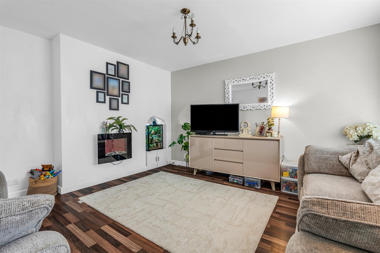 This is a great room of a good size but also a nice square shape that gives you plenty of opportunities to lay it out and furnish it in the way that suits you best. Very large picture windows look out over the front garden, pretty much taking up the whole wall, and ensuring that the room stays light and bright throughout the day. The room is comfortably large enough for multiple sofas and chairs, still leaving ample free floor area for easy movement in, around and through the space. Set within the rear wall is a flame effect fire along with a stylish shaped alcove.
