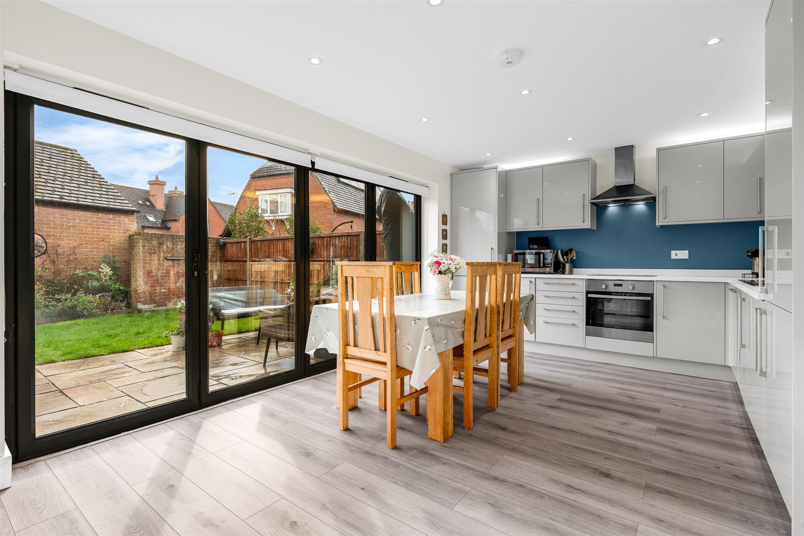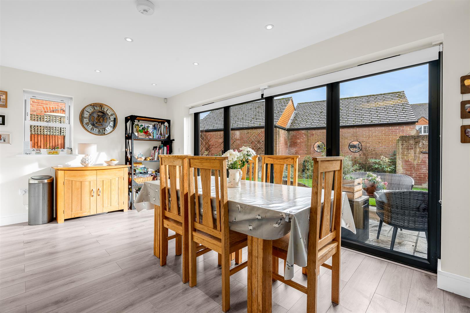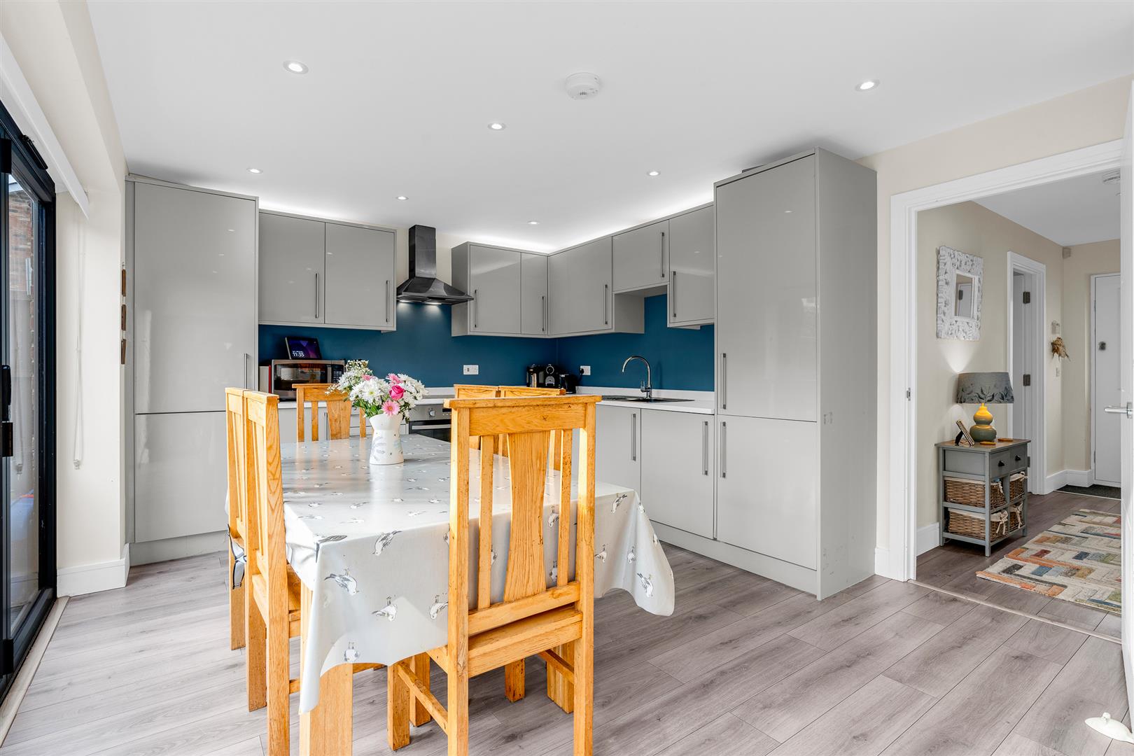 The whole of the rear of the house is taken by the stunning kitchen/dining room. This is a large room by any measure at over eighteen feet long and is bathed in natural light and blessed with fabulous views of the garden thanks to the substantial bi-fold doors that present what amounts to a full wall of glass extending across the rear of the room. One end of the room has been cleverly fitted with a comprehensive array of wall and floor mounted kitchen cupboards in a superb gloss grey finish that ensure more than ample storage space along with plenty of food preparation worktop area is always available. Within the cabinets is a full range of appliances that any family might need, fully integrated to allow easy use whilst maintaining a chic and stylish presentation of the space. The remainder of the room is left as open floor space for you to use in the way that best aligns with your family’s needs, and will easily embrace a large dining suite along with other occasional furniture. This is a delightful room, beautifully specified and designed to be usable throughout the year with a great connection out into the garden, undoubtedly destined to quickly become the heart and hub of this stunning home.