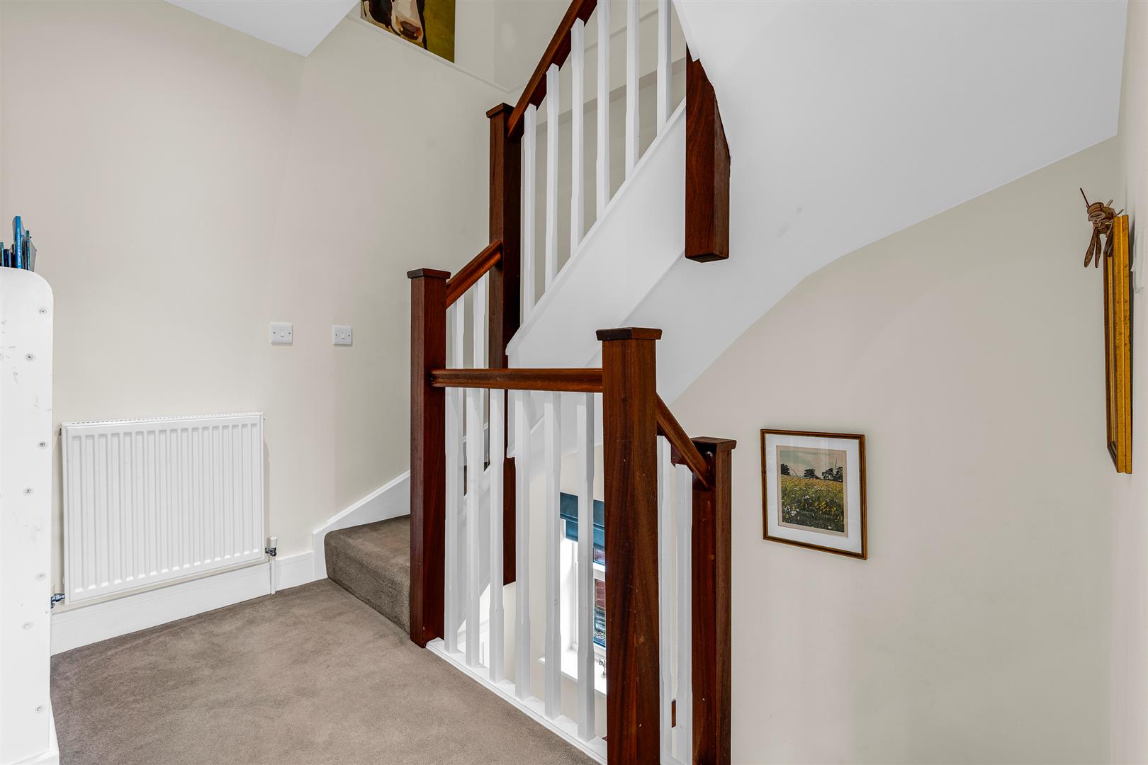 Up on the first floor is a generous landing, nicely galleried over the stairwell, that leads into two of the bedrooms, both large doubles of good size and shape, and the family bathroom which has a ’P’ shaped bath with a useful shower fitting and screen installed. The front facing bedroom benefits from a lovely ensuite shower room.