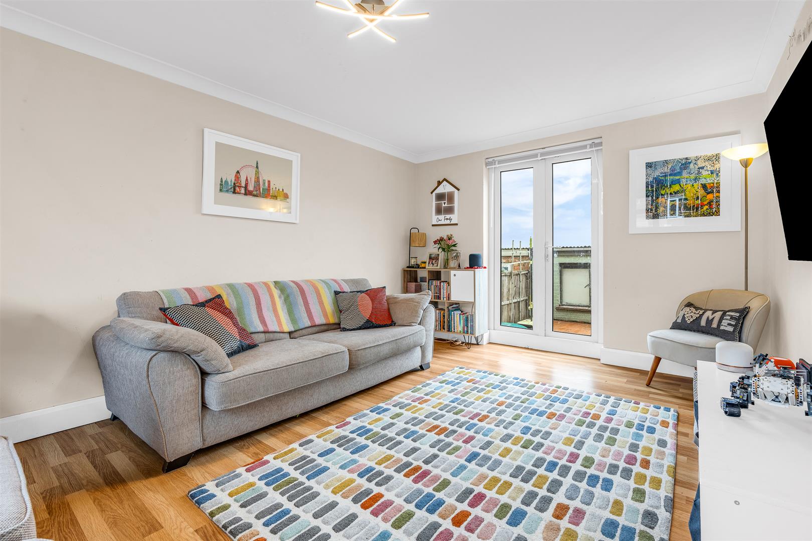 The living room is a great example of this great use of light and space, openly connecting from the hallway and stretching the full depth of the house enabling large windows to be located at the front and the back. In fact it goes one better than that by incorporating fully glazed double doors at the rear which open onto the fabulous decking terrace that stretches the full width of the garden, making it really usable on a day to day basis. The room is a good size and with nicely balanced proportions, making it very flexible in how you choose to configure and furnish it, and would easily accept multiple sofas and chairs along with other occasional furniture, whilst still leaving ample floor space to allow for easy movement in, around and through the room.