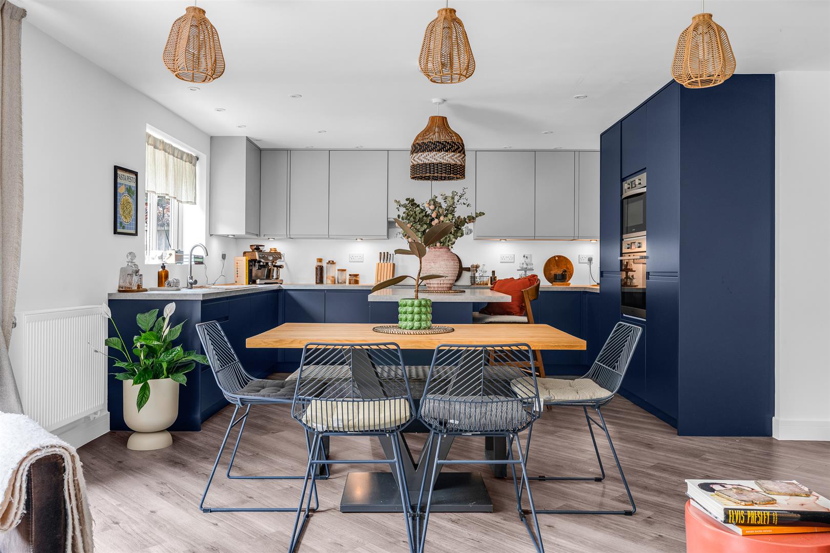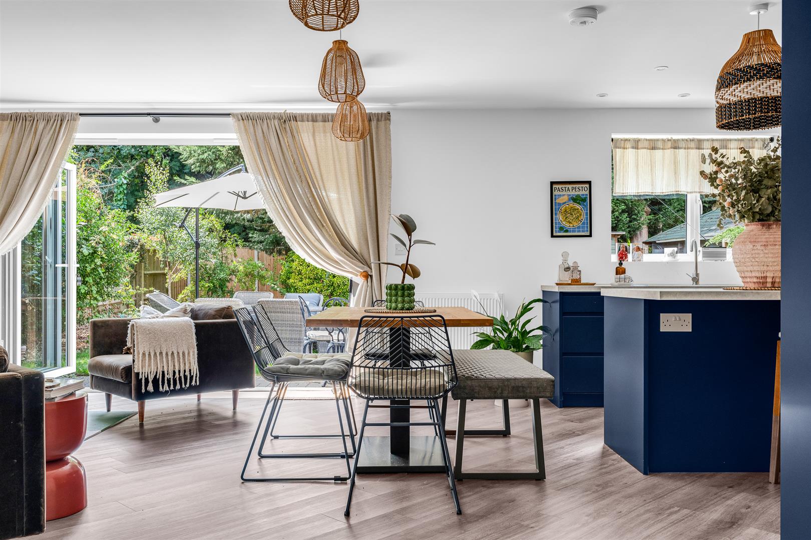 The whole of the rear of the house is taken up by the outstanding open plan kitchen/dining/family room. This really is an exceptional space, large by any standards at twenty-eight feet in length, and bathed in natural light through a large window within the kitchen area and a fabulous set of multi-panel bi-fold doors that open the rest of the room out into the West facing garden. The kitchen area has been intelligently placed into a natural recess at one end of the room, presenting a strong ergonomic as well as visual design, further enhanced by the appealing two tone cabinets. The perimeter is lined with a full complement of wall and floor mounted cupboards, ensuring more than ample storage as well as plenty of worktop area, which is expanded by the inclusion of a stylish centrally placed island incorporating a neat breakfast bar. All of the appliances you would expect in a house of this size and quality are integrated within the cupboards, with the aforementioned utility/laundry room next door in full support. The remainder of the room is left as open floor space for you to use as you wish. Certainly it can easily cope with multi-tasking as a dining and family room, just as it does now, with its seamless connection out into the garden really paying dividends during day to day life, and particularly when entertaining guests. This is a terrific room, flexible, versatile and without doubt destined to be the hub and heart of this wonderful family home.