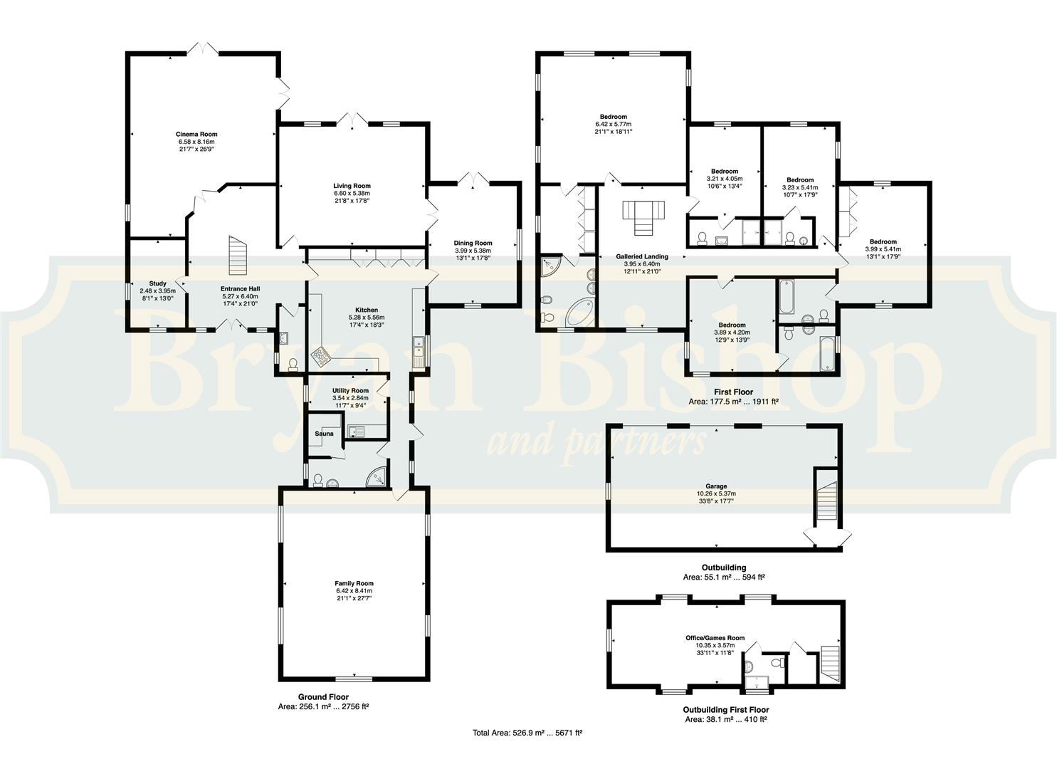 The solid oak oversize double doors, flanked by large windows either side, welcome you into a wonderful entrance hall, visually impactful yet still warm and welcoming, featuring a fabulous solid oak bespoke staircase rising up from the centre and splitting part way up before joining the wonderful 360' galleried landing on the first floor. From the spacious entrance hall, doors lead off into the front facing study/office the substantial cinema room, the living room at the rear and the kitchen, as well as a perfectly placed guest cloakroom.