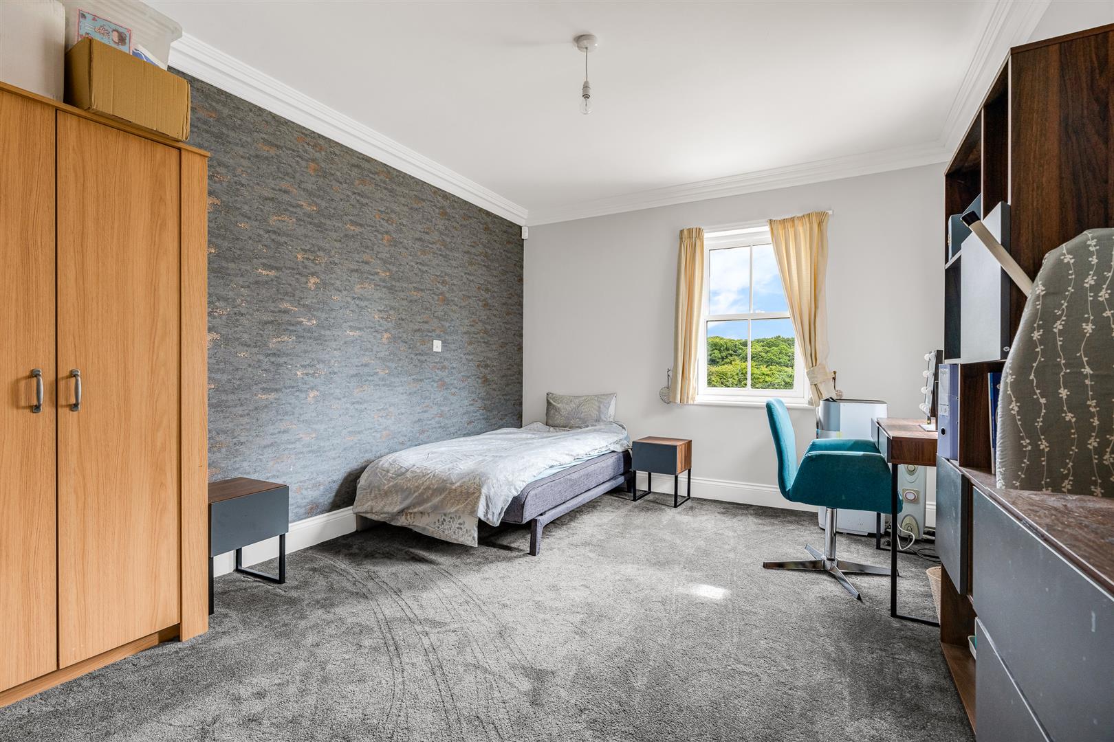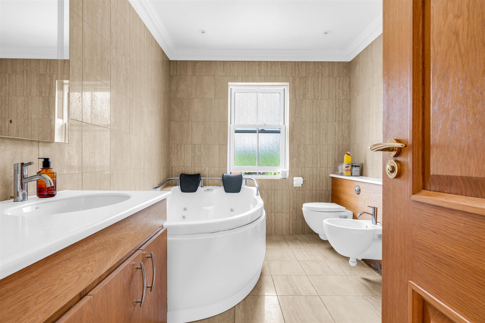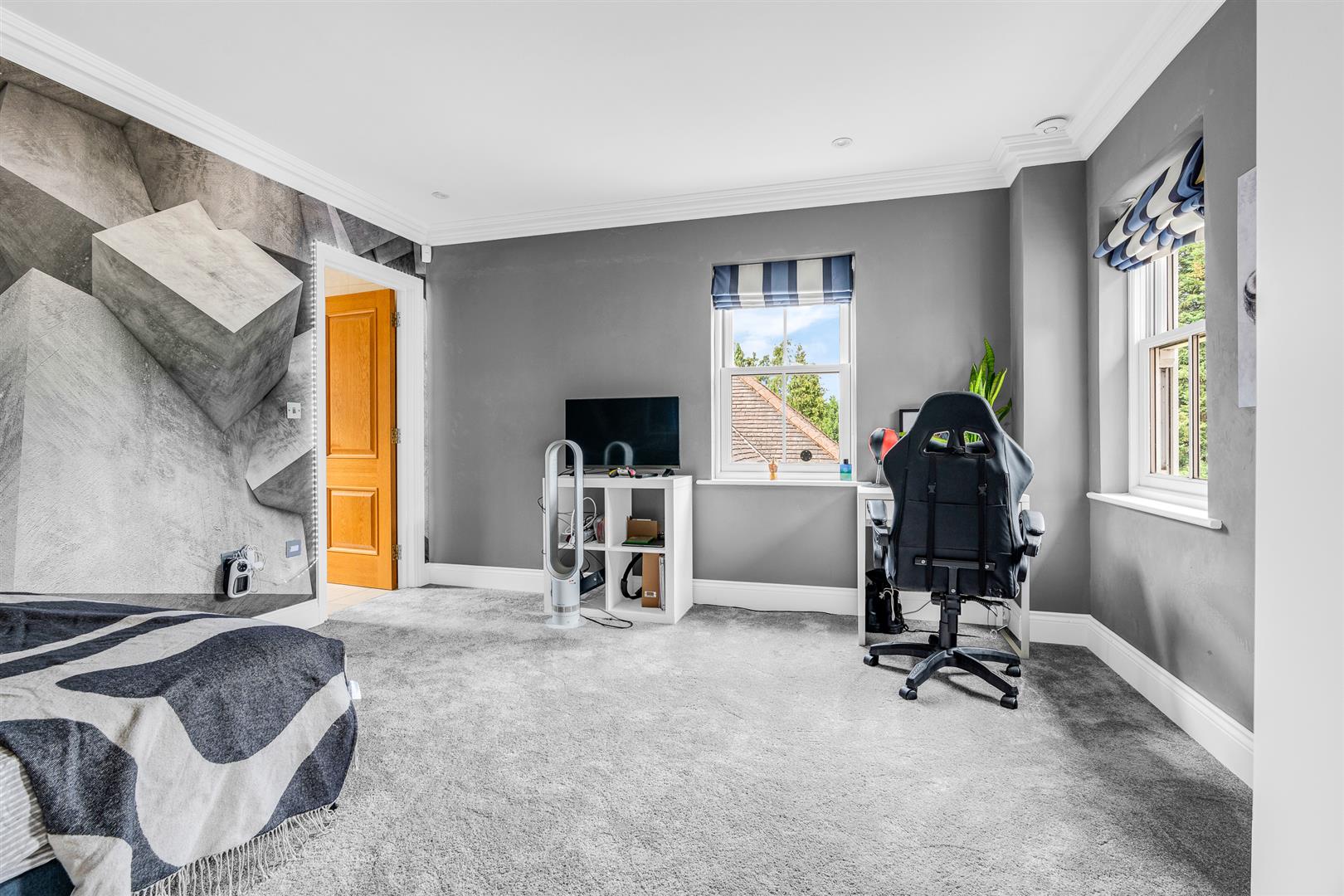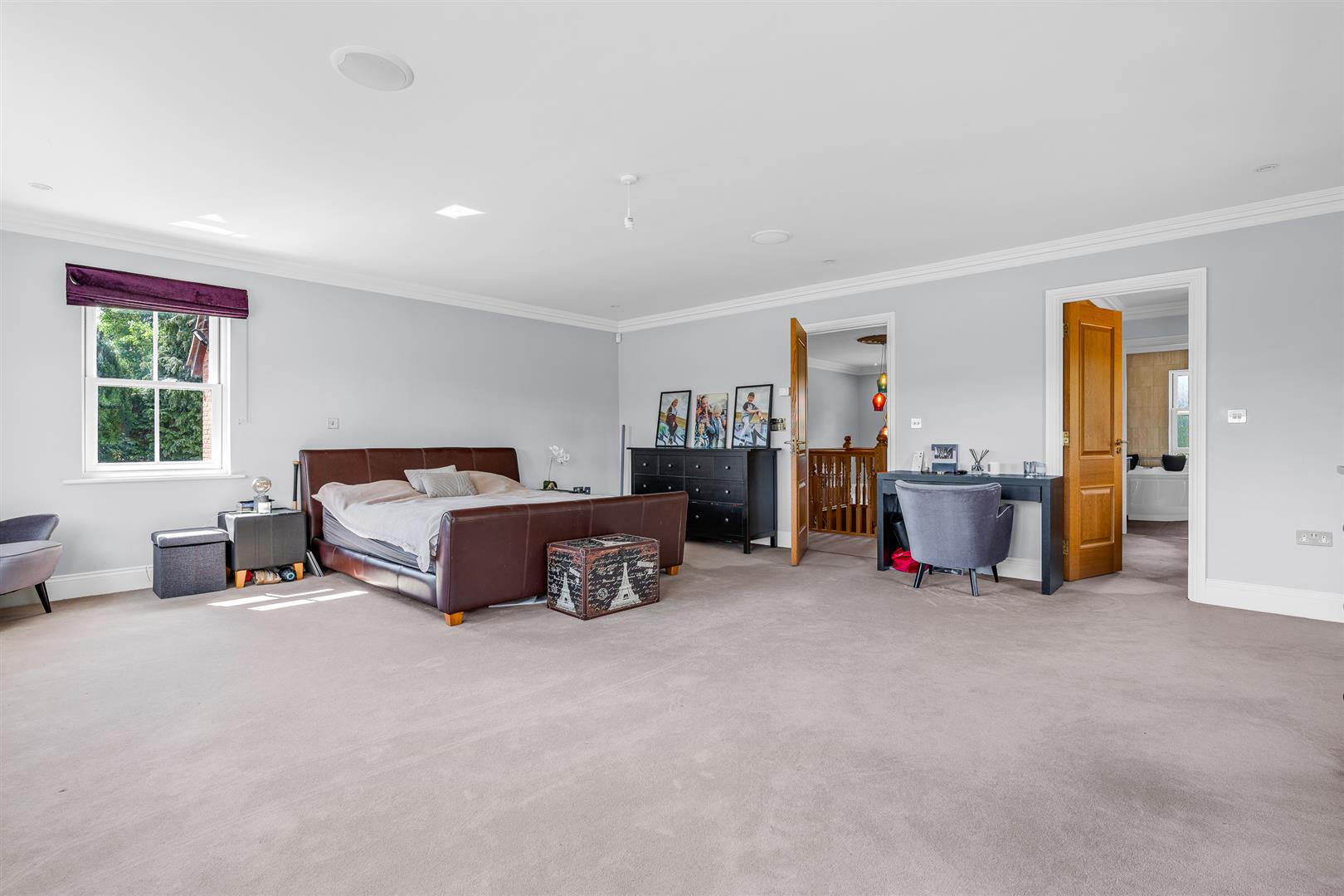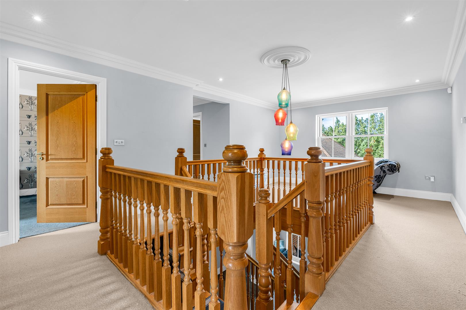 Upstairs, the wonderful, ornately carved balustrade encircles the gallery, with a nice lounge area below the front facing window. From the main landing a door opens into the generous main bedroom suite which has a large dressing room with fully fitted wardrobes and an en suite bathroom with a separate shower and double size whirlpool bath. An upper hallway runs along the house, leading to the other four bedrooms, with all of them being comfortable doubles in size, and all of them featuring an en suite shower room or bathroom with shower fitting and screen over the bath.