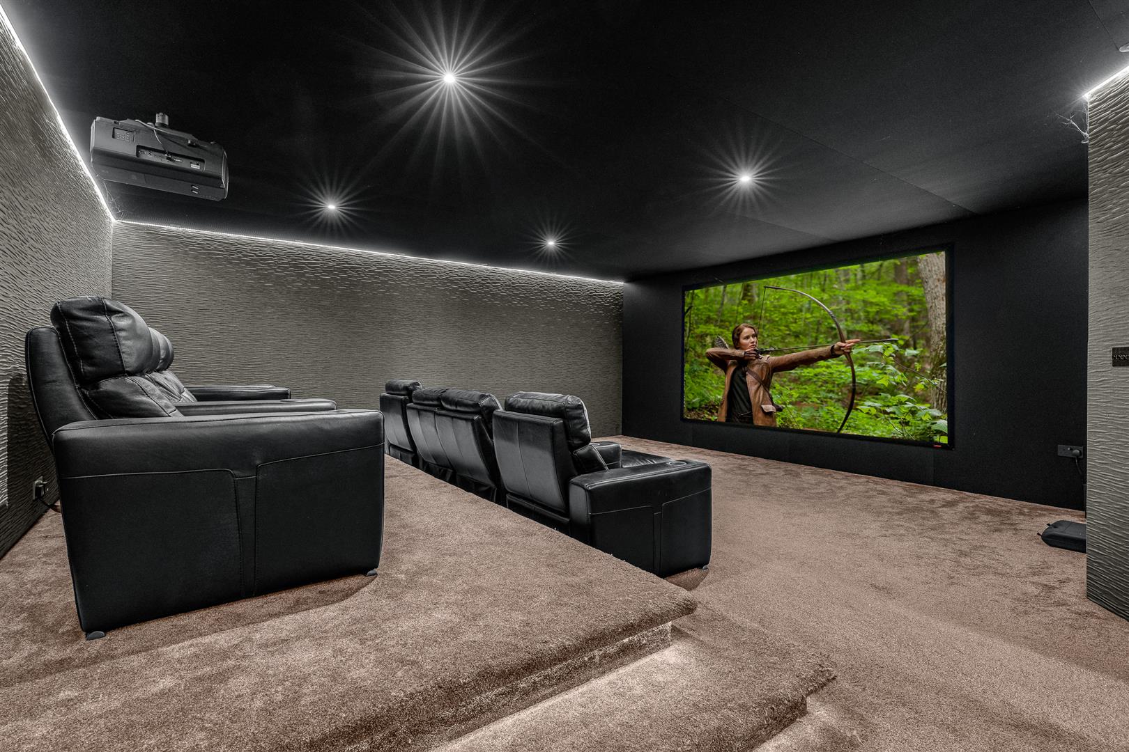 The rear corner of the house hosts the cinema room, a really impressive facility pretty much the same size as a public multiplex cinema, with state of the art equipment and a raised terraced floor to ensure a perfect view of the screen for everyone. All you need is the popcorn !