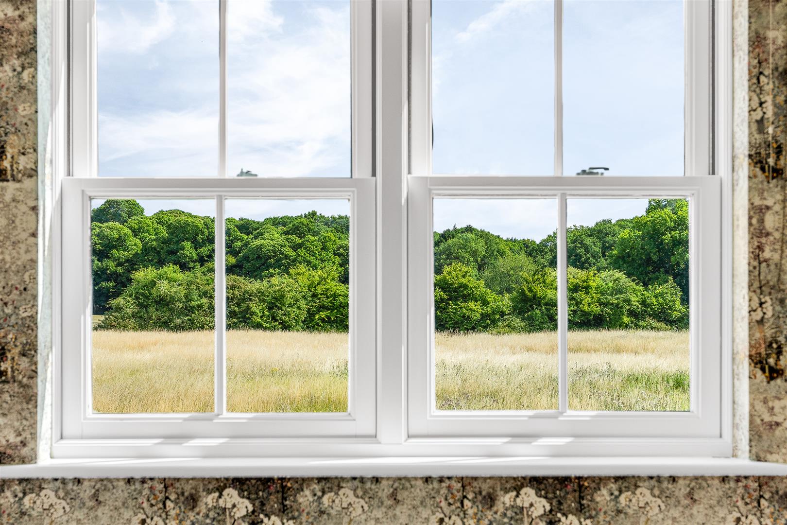 Also benefiting from double doors out into the garden, but this time with two windows spread across two different aspects, is the adjoining dining room. This room links through double doors from the living room, with a separate door into the kitchen allowing a nice easy flow around the main daily used rooms. In the dining room, as in all of the ground floor rooms, the elegant sash windows are especially deep which keeps the whole house wonderfully well lit as well as opening up the expansive views across the grounds, just one of the many details that really elevate this property above its peers.
