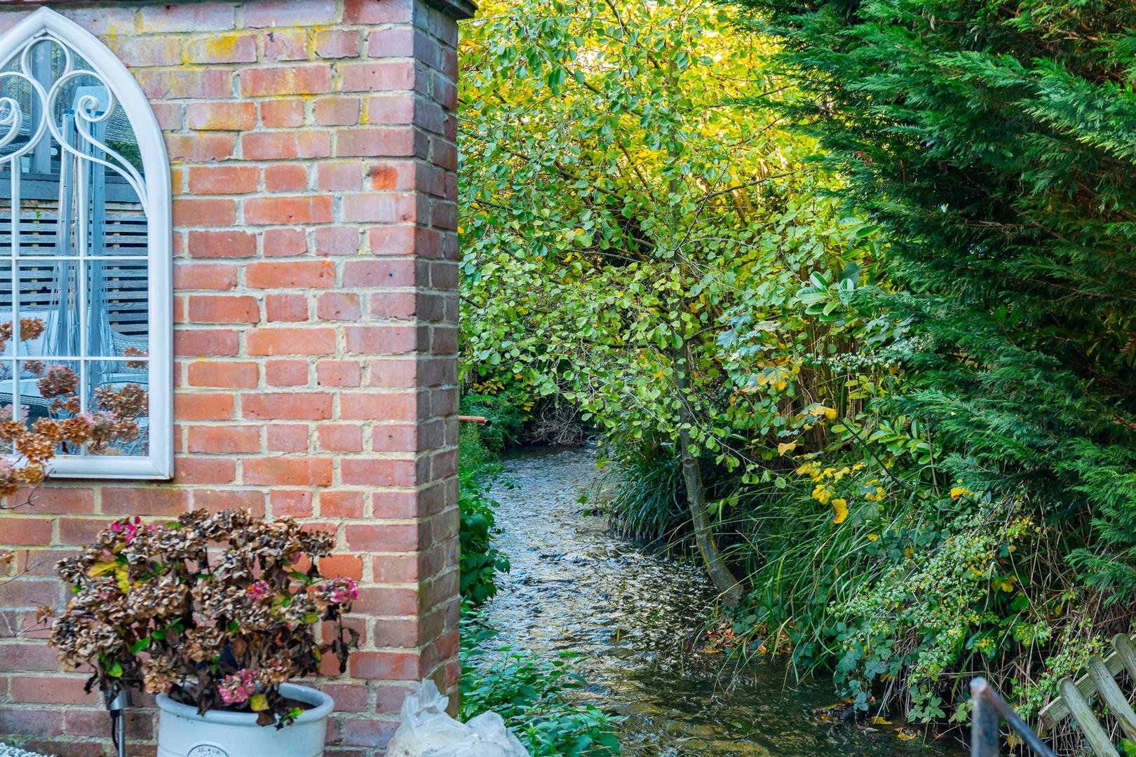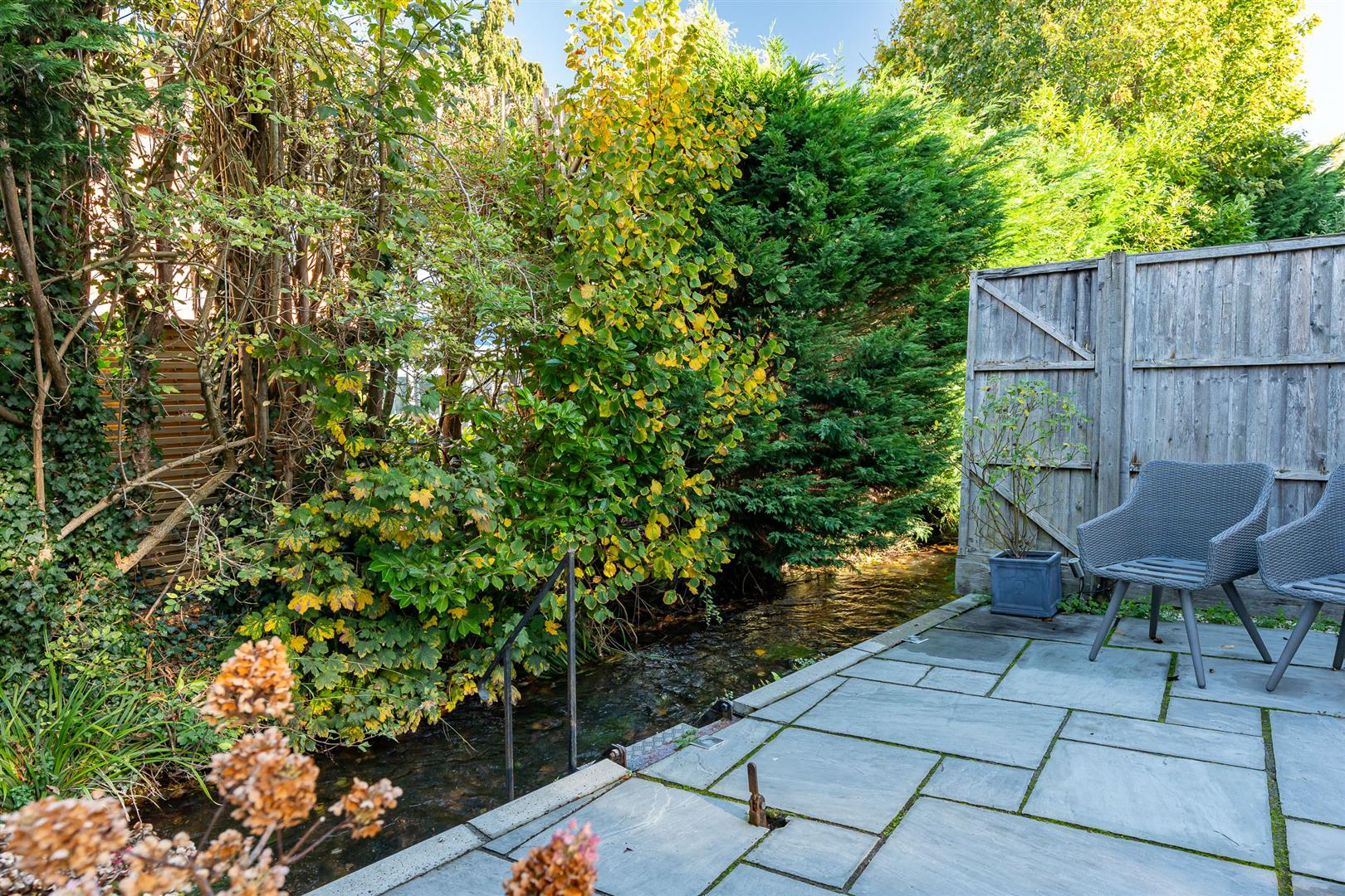 At the front there is a wide paved pathway running from the front gate to the door, passing a neat garden with low level shrubs lining the front of the house. To the rear is a large all weather terrace that extends the full width of the house, linking directly to the rear of the living/dining room, providing a peerless area for casual seating and outdoor dining overlooking the rest of the garden and the river Mimram that burbles past the far boundary. A set of steps lead down onto a large paved patio below that offers further generous social space, along with storage under the terrace and direct retractable step access into the river. The whole of the rear garden is a low maintenance entertainment space without parallel, with the unique and charming connection to the river sure to be a real talking point amongst your lucky guests.