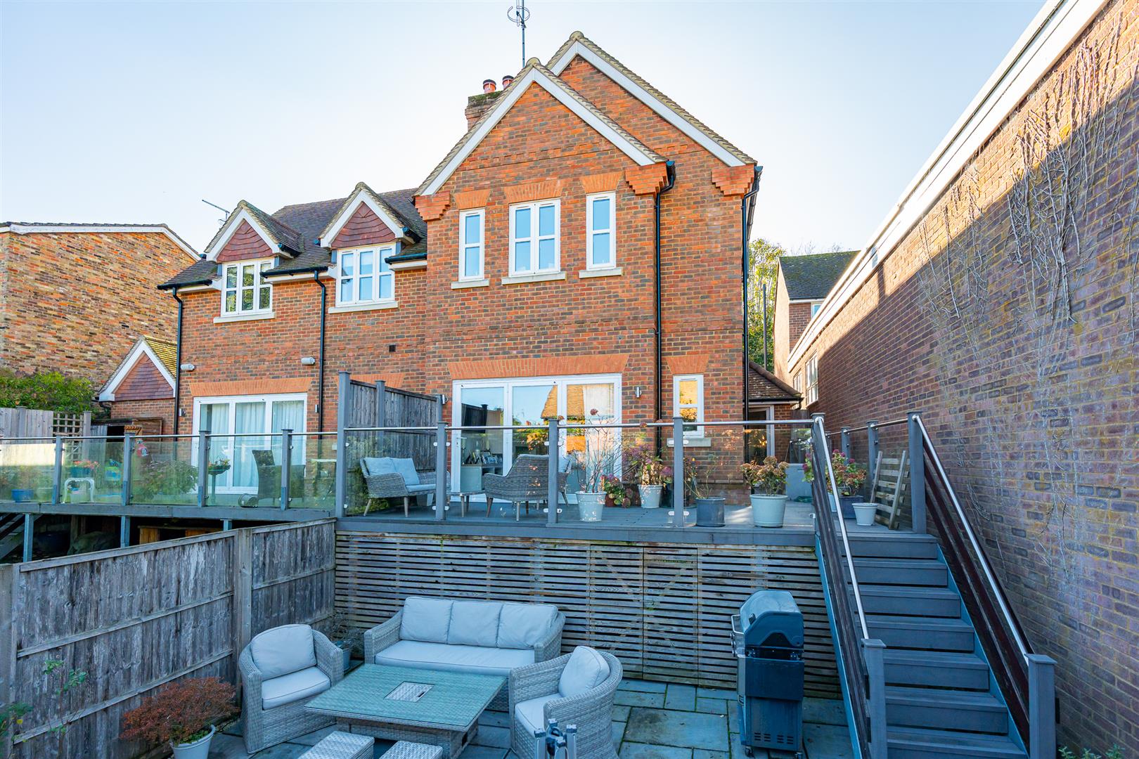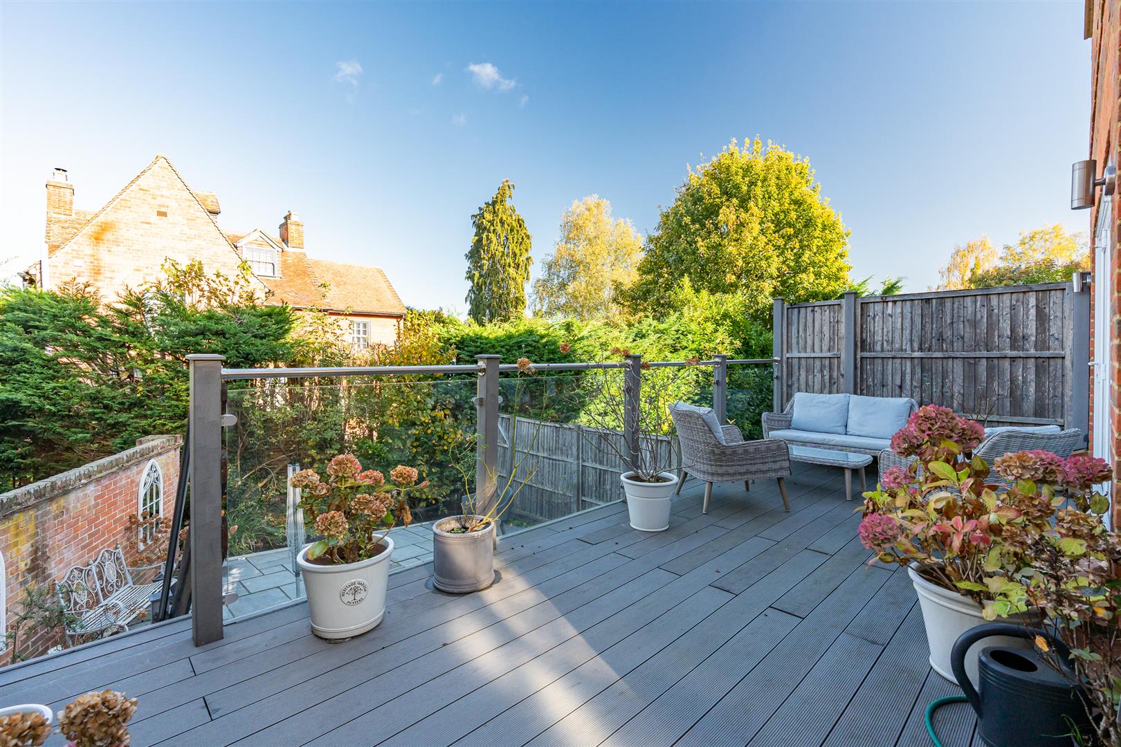 Bryan Bishop and Partners are delighted to bring to the market this exceptional three bedroom, two bathroom house in the very centre of the extremely popular village of Welwyn. Presented in immaculate condition inside and out, this impressive property is a paragon of style and elegance, with generous ceiling height on the ground floor and high vaulted ceilings up on the first floor, a gorgeous curving bull nose staircase with glass infill panels bisecting the open plan living space and large bi-fold doors opening onto a superb terrace overlooking the river Mimram. The house has been built to the very highest specification, which ensures modern materials and techniques join the effortlessly chic contemporary style, bringing underfloor heating to the ground floor, low voltage spotlights, ultra efficient double glazing and a state of the art alarm system, as well as valuable off street parking on the driveway leading to the garage.