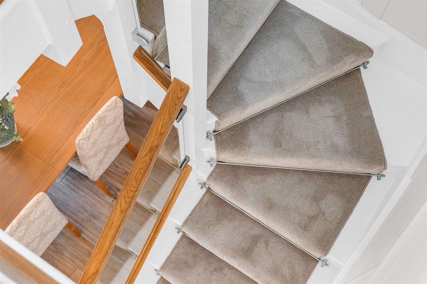 The solid wood front door is set into an enclosed tiled roof porch that provides a welcoming entrance hall, as well as access into an ideally placed guest cloakroom and a useful separate door out onto the rear terrace. A further door opens into a generous reception area set between the living/dining room and the kitchen with the visual treat of the beautifully designed staircase as an arresting backdrop.