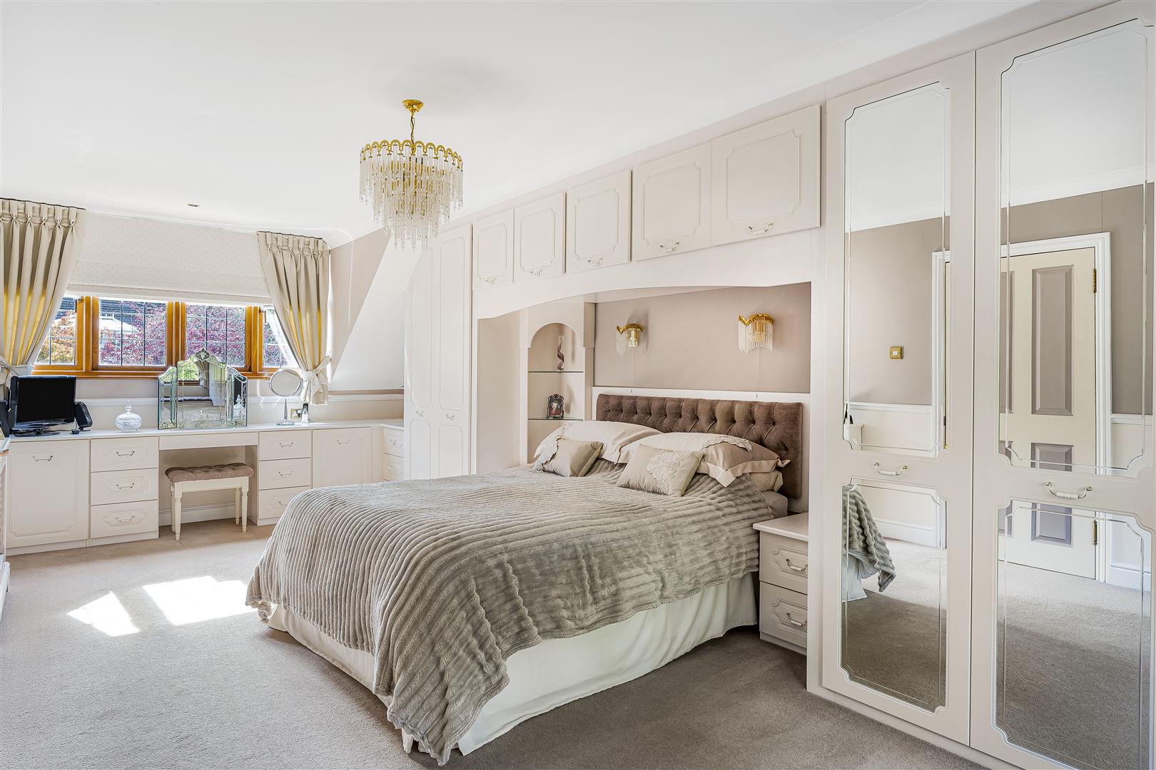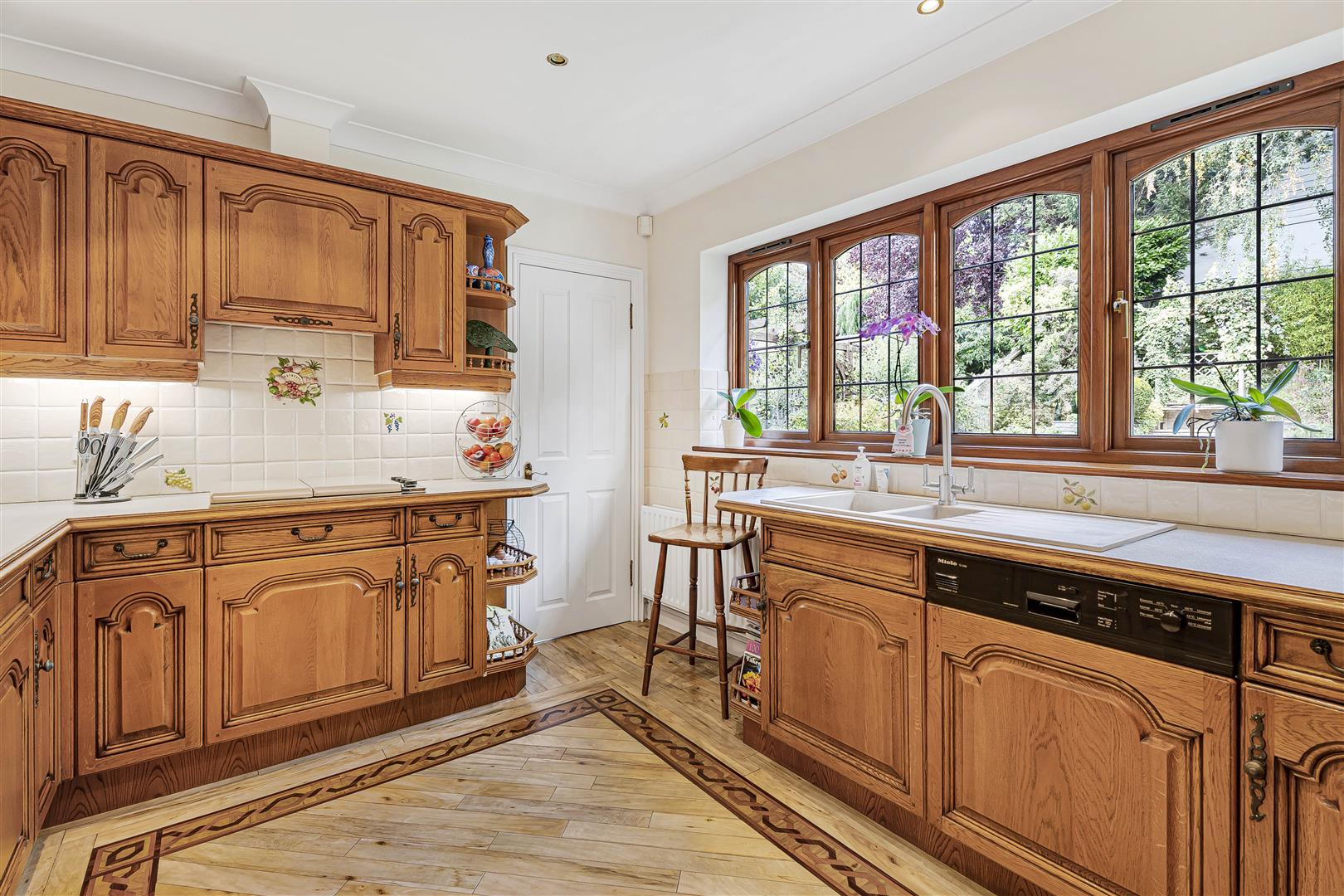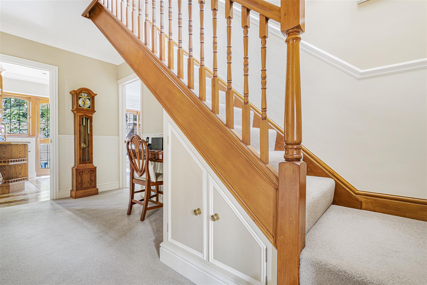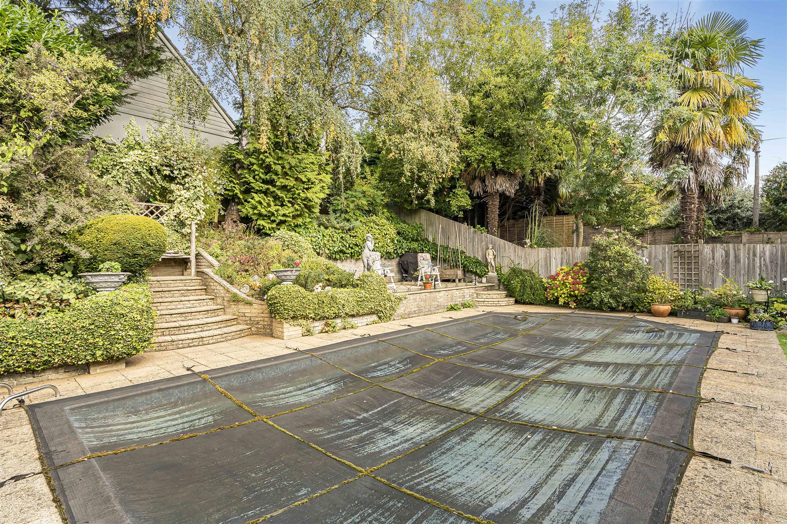 The house is set well back from the quiet lane on which it sits, with a generous block paved carriage drive sweeping up past the house and garage, looping around a nice gravelled garden area that is planted with a variety of mature and interesting shrubs, bushes and specimen trees. A useful gated pathway extends along the side of the house linking the front to the rear garden, which is fully enclosed and secure so ideal for pets and children. To the rear is a paved pathway encircling a nice area of lawn, beyond which is a fabulous swimming pool set into a paved patio, overlooked by a lovely pergola covered dining area just outside the French doors from the dining room. The remainder of the garden is expertly landscaped into a series of small terraces, interspersed with a number of seating areas tucked into the substantial flower borders.