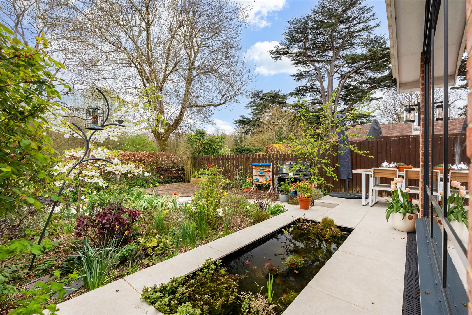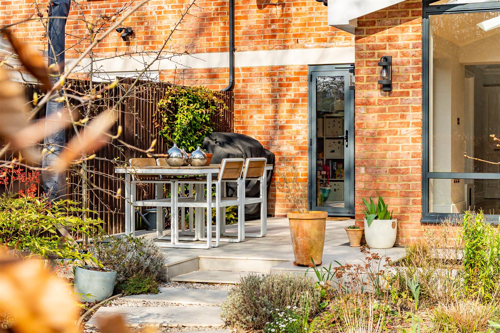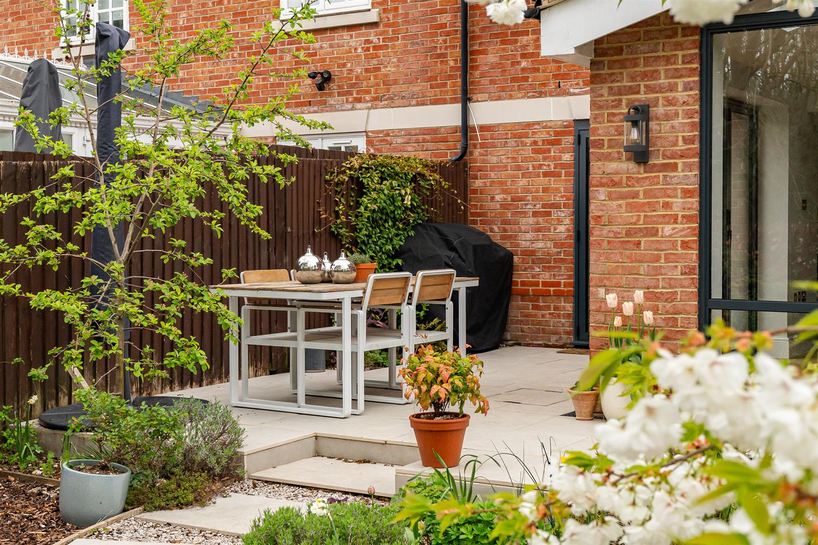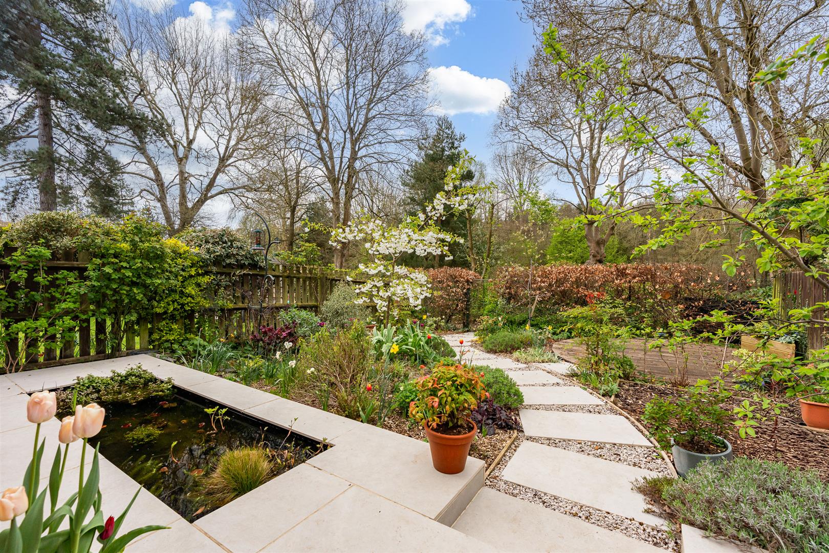 The houses are arranged around an attractive private courtyard with plenty of parking for residents and guests at its centre, along with a private garage en-bloc. At the rear there is a fabulous paved patio running around the outside of the dining room that links the access points from the house via the dining room and study/office/playroom with a very elegant ornamental pond integrated within it just outside the dining room windows, expanding into a stylish area to the side that is perfect for relaxing and dining al fresco. A neat paved pathway curves away across the garden, which is designed in a Mediterranean style, with open planting on either side and a neat decking area set into the far corner. There is a neatly clipped hedge at the far boundary inset with a gate, beyond which are the open communal grounds that provide a lovely natural area that leads down to the meandering river Mimram. With a lovely open aspect and the extensive communal grounds easily accessible, this house enjoys a unique situation that is very hard to beat.