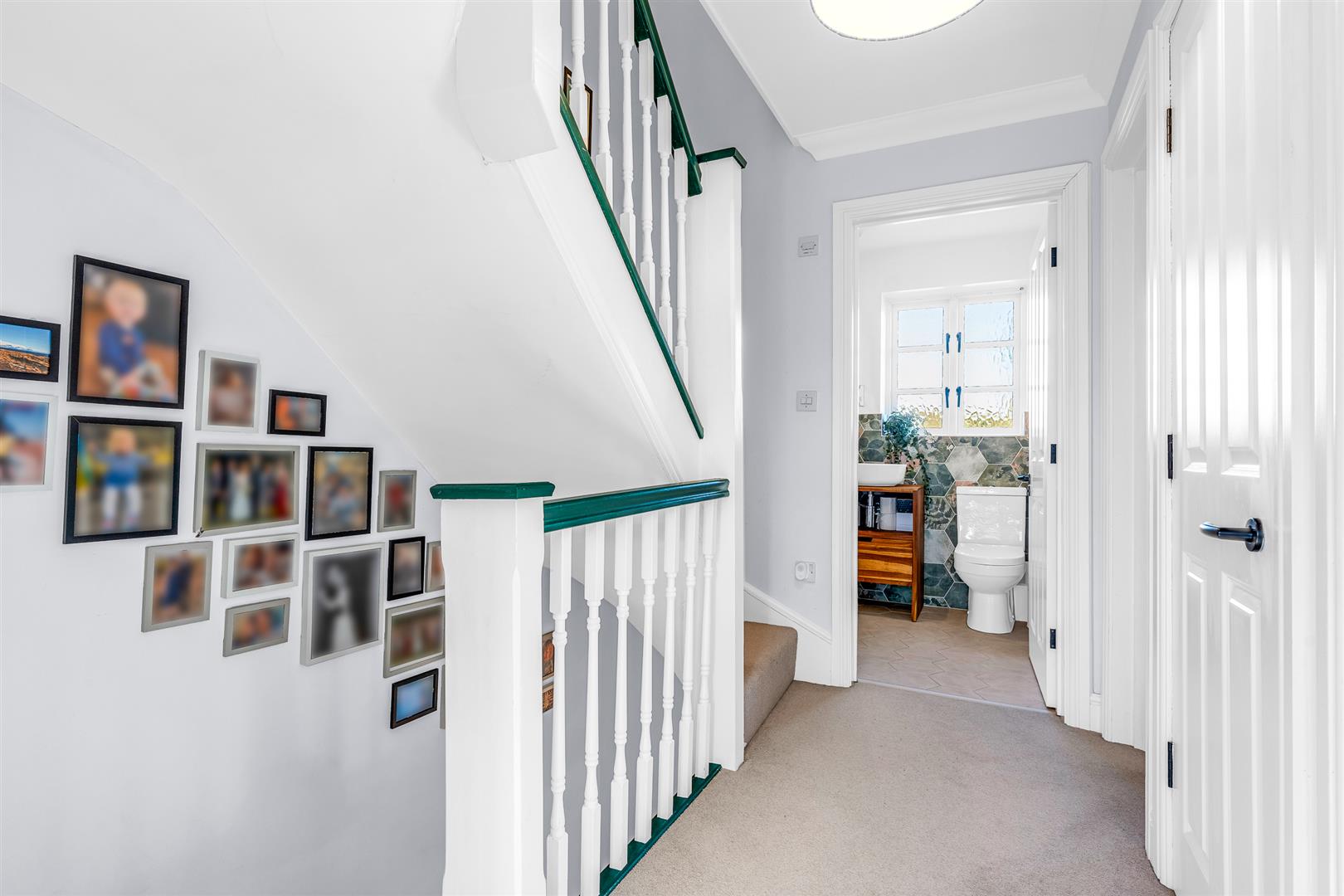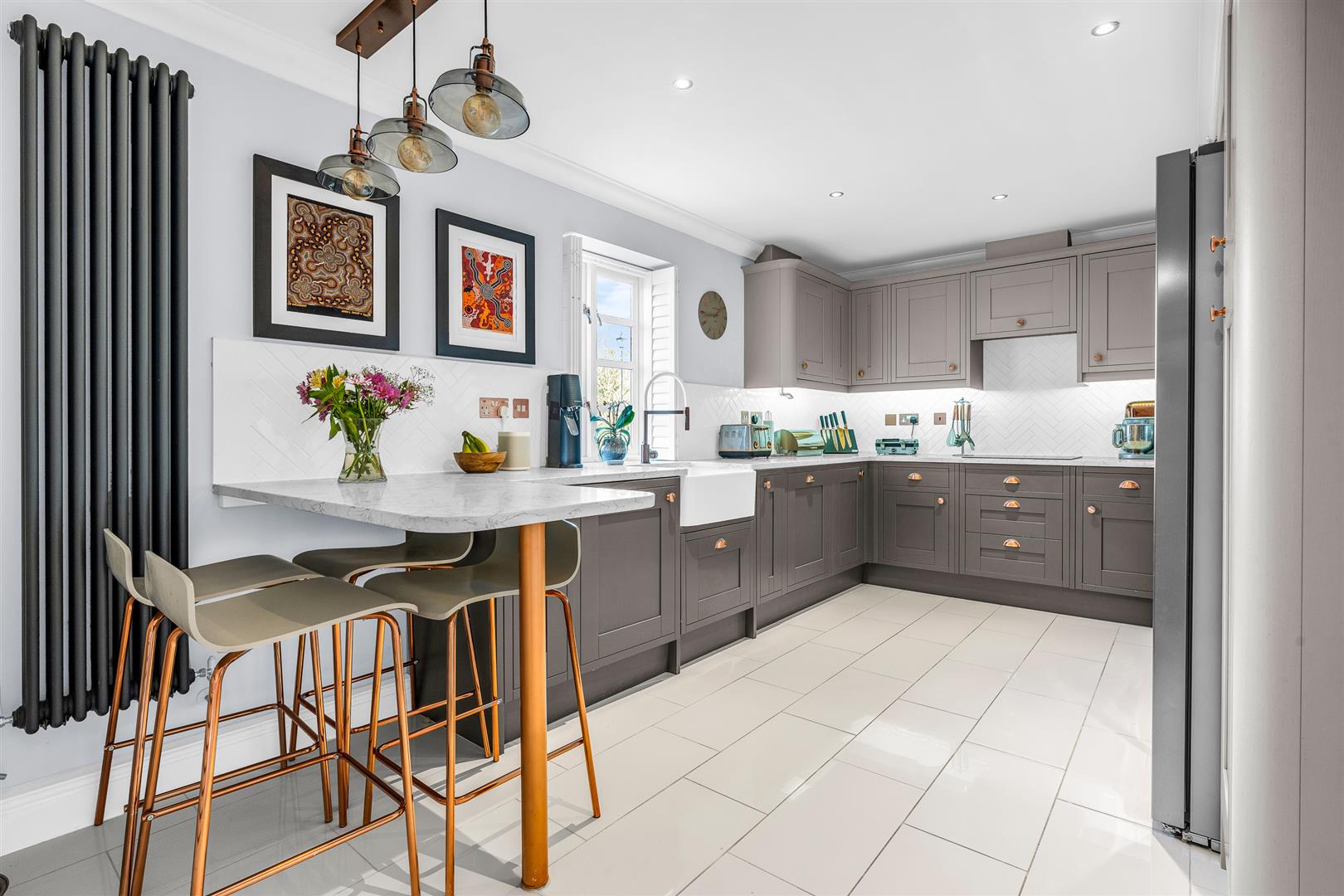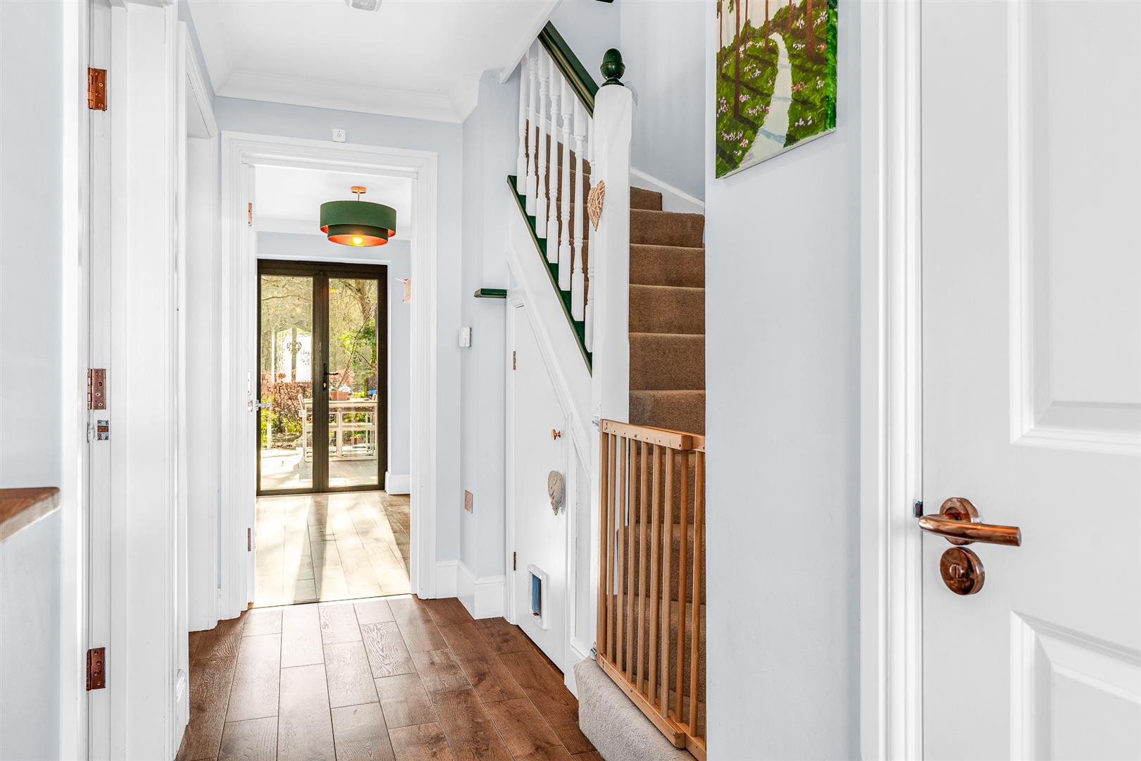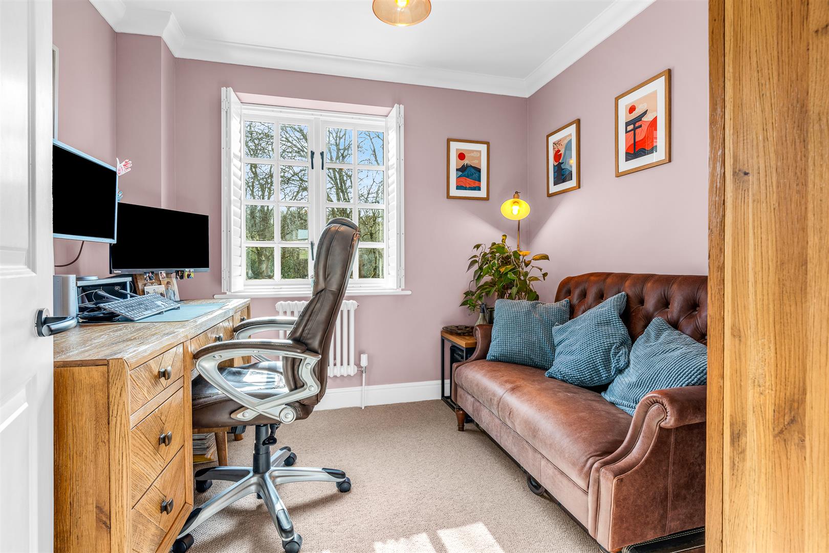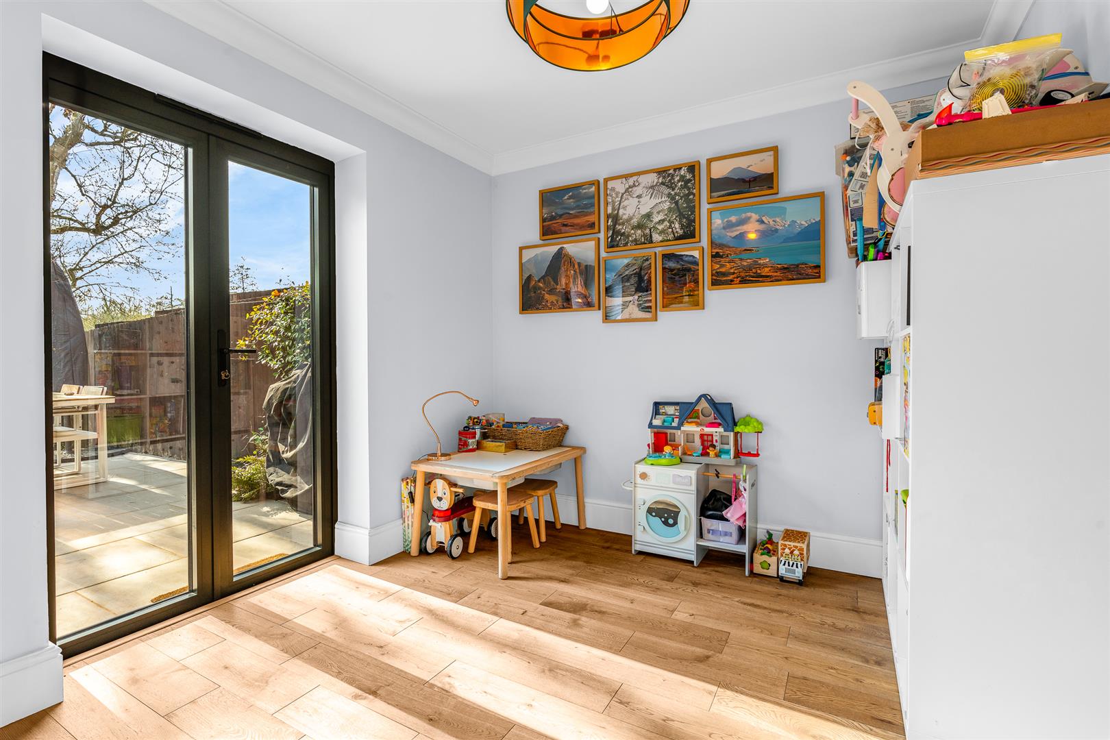 The adjoining study/office/playroom is another room with direct access out into the garden through a pair of glazed French doors, keeping it light and bright throughout the day. It is a good size and would easily accept multiple work stations and ancillary storage, making it a comprehensive work from home facility if needed. Should there not be a need for a home office, or if the office could fit into one of the four bedrooms upstairs, it would also make a fabulous playroom, games room, music room, gym or arts/crafts studio.