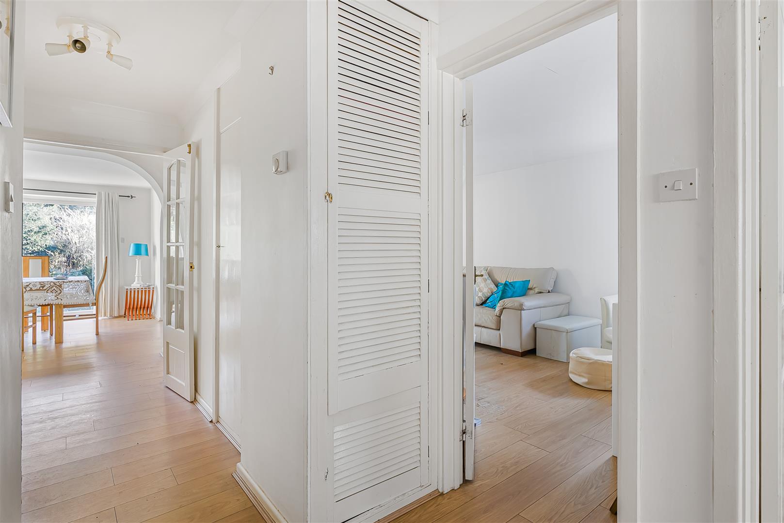 Adjoining the living room by way of an open arch, and also with direct access from the reception area through glazed double doors, is the dining room. This is another generous room with a nicely balanced shape, linking open plan to the adjacent kitchen. Glass double doors open out into the rear garden, making this room really usable all year round, and enhancing the flow between the inside and outside. Certainly this room is comfortably large enough to house a substantial dining suite, but would also perform just as well in a number of other roles, really helping you to adapt the house to dovetail in with your needs.