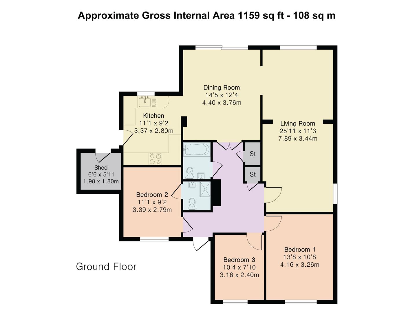 Three good sized bedrooms are arranged across the front of the bungalow, with two of them being large doubles in size. One of the bedrooms is blessed with a fully tiled shower room ensuite featuring a generous walk-in shower enclosure.