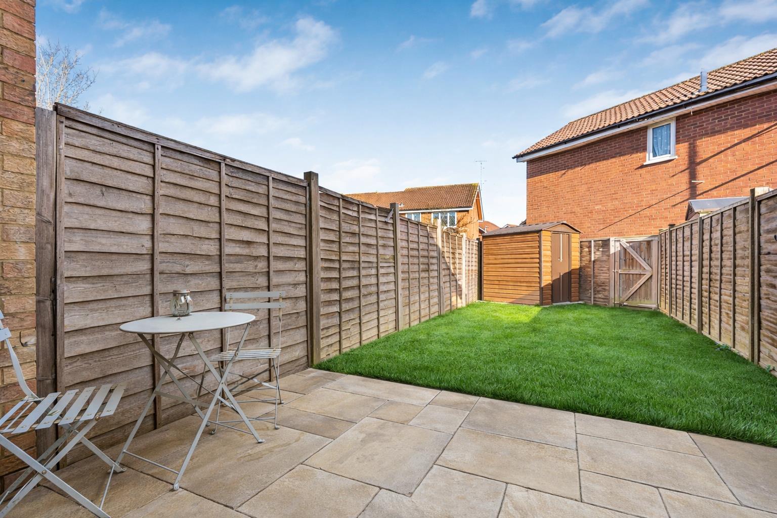 The property is on a quiet residential road that has ample on street parking, with a smart block paved frontage offering low maintenance practical access to the front of the house. To the rear is a good sized garden that is great for pets and children alike. A deep paved patio runs the full width of the house, seamlessly accessed through the glazed double doors from the lounge/dining room, which presents a wonderful outdoor area for casual seating and dining furniture, before opening into a generous lawn that extends back to the far boundary fence. The rear corner of the garden has a large all-weather shed on a raised area of paving, and there is a useful separate rear gated access so you don’t have to go through the house to get to the garden, so useful for lawn mowers and other garden equipment and furniture.