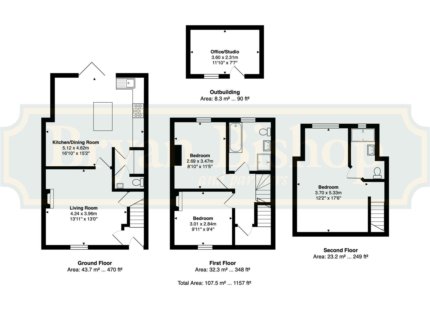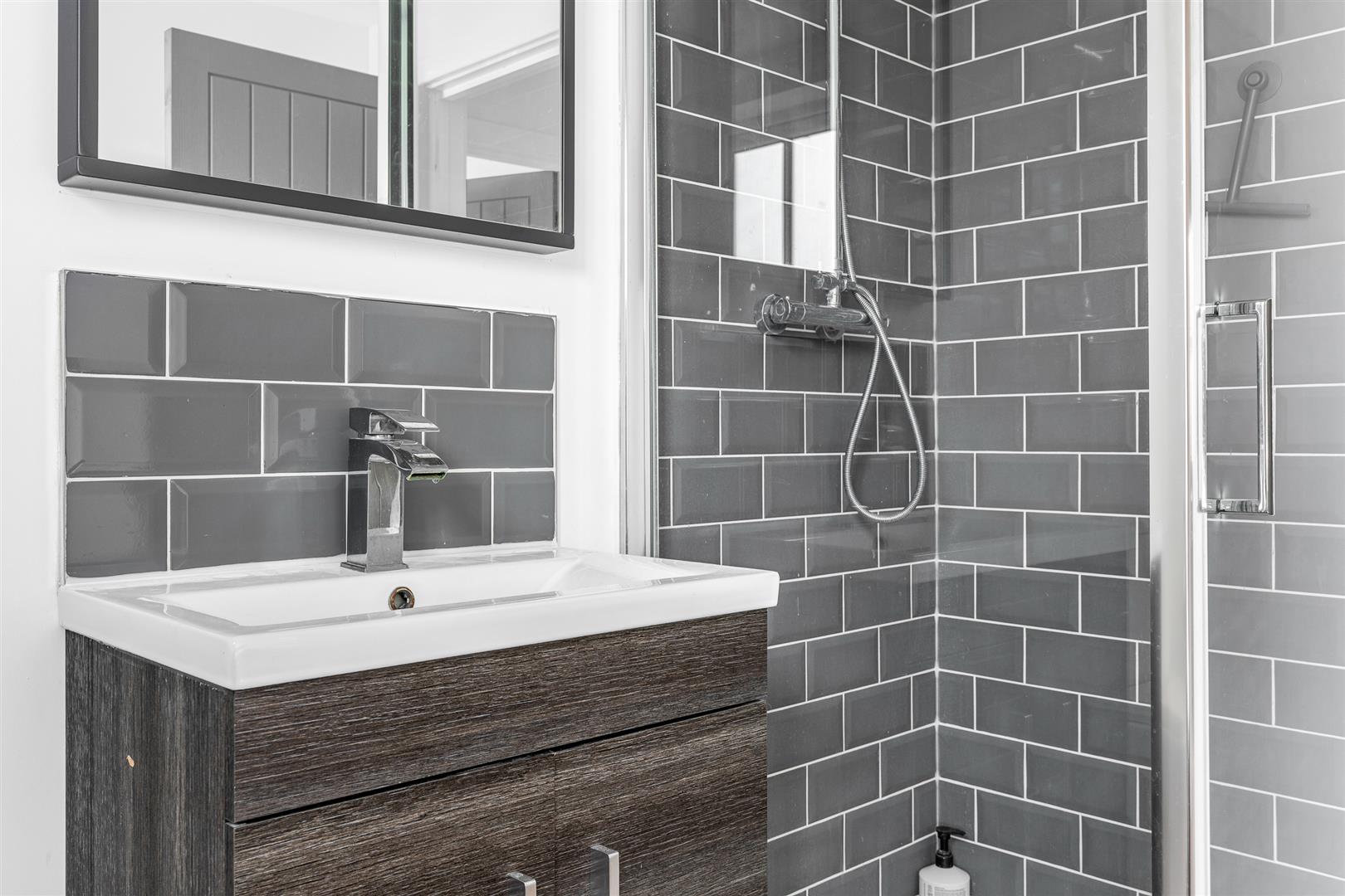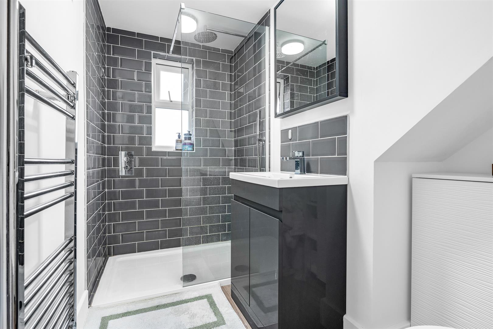 The first-floor landing leads to two beautifully proportioned bedrooms, each offering a serene and versatile space, finished in soft, neutral tones that enhance the sense of light and calm. These rooms combine style with practicality, providing a comfortable retreat for family or guests. The family bathroom is equally impressive, showcasing a contemporary design with carefully chosen fittings and finishes, creating a chic and functional space.